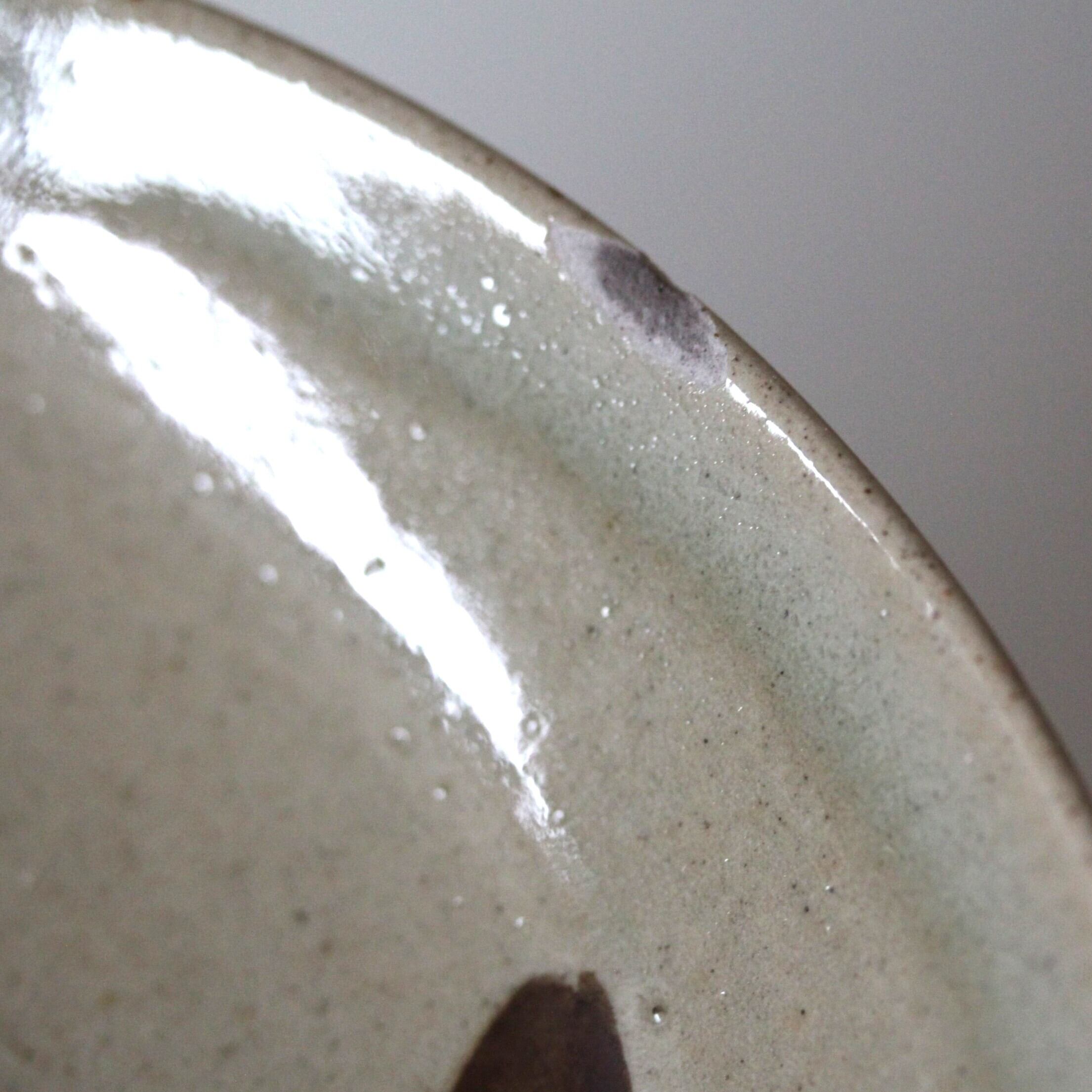 欠けのある赤膚焼銹絵菊画台皿 d19.0cm Chipped Akahada Dish on Stand, Chrysanthemums Design 20th C | Broken and Repaired / キズトツクロイ