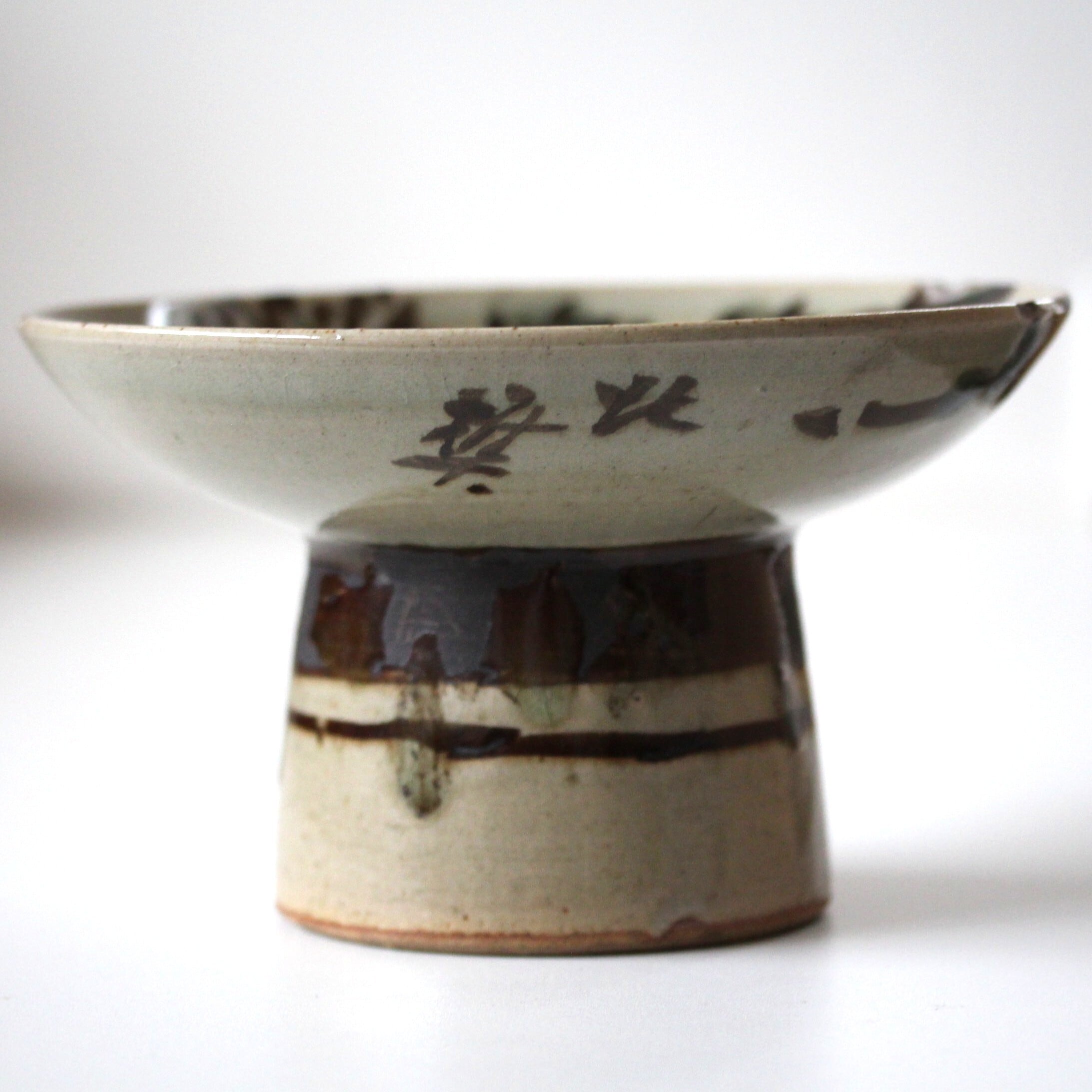 南画の菊が描かれた、風情ある高い脚(台)付のうつわです。