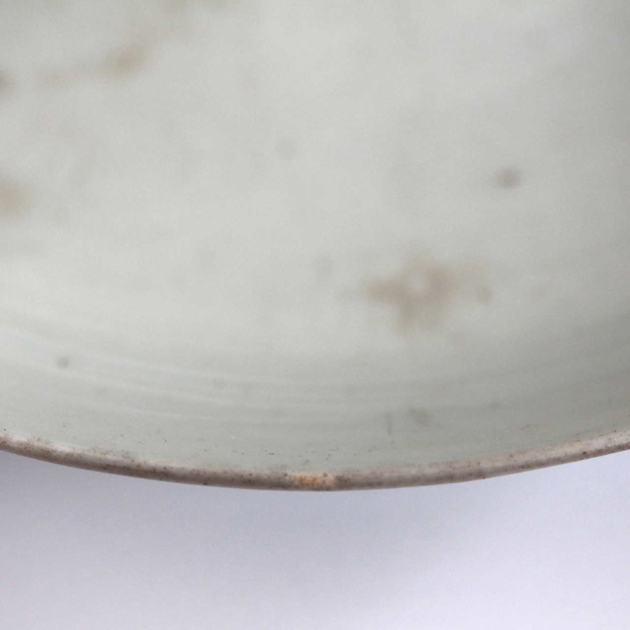 状態:口縁にニュウ(シミ)、成形時の凹み、釉切れ、釉下の煙。表面に擦れ。高台に窯疵。