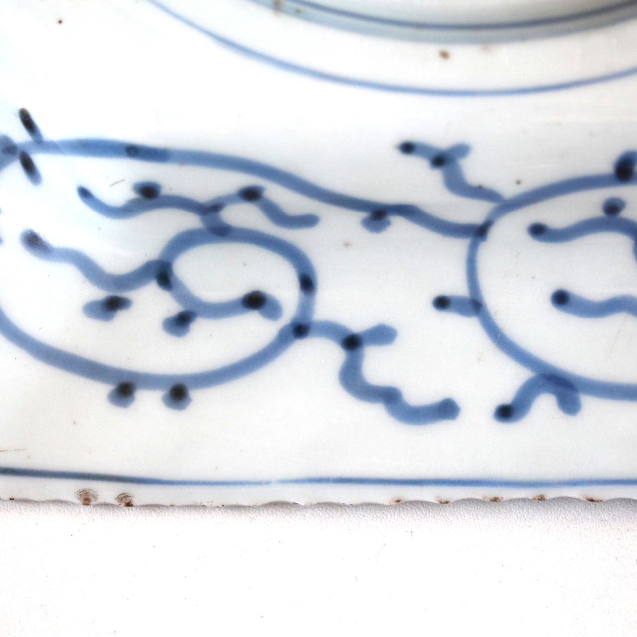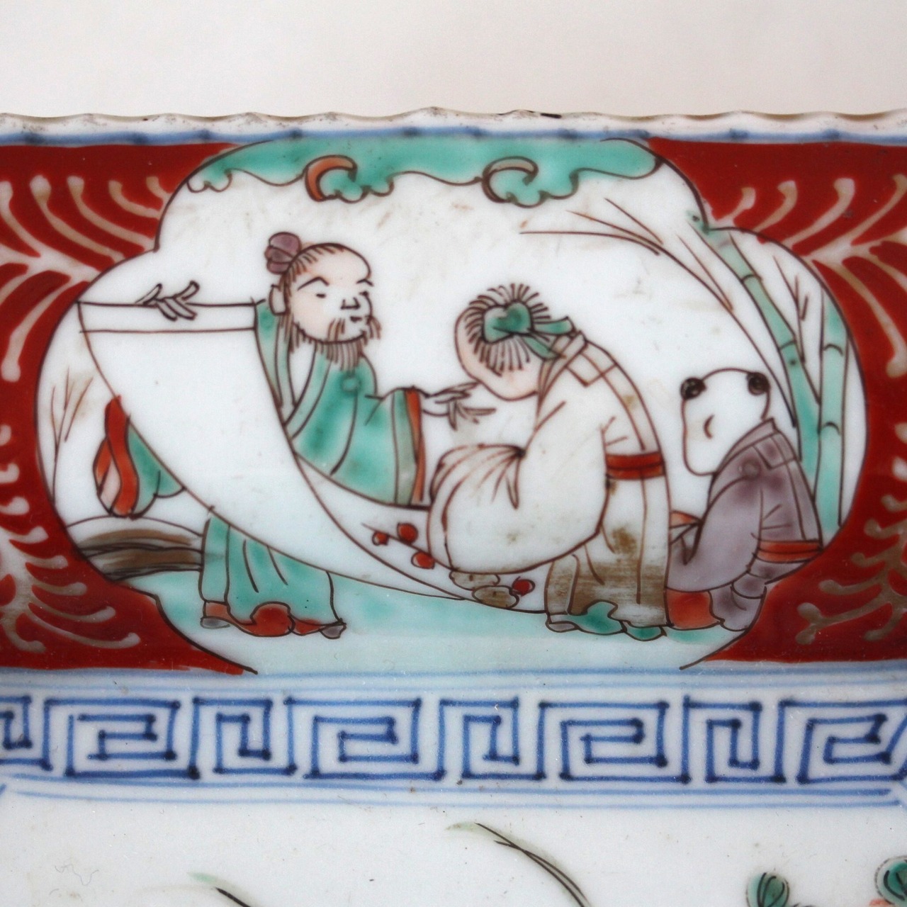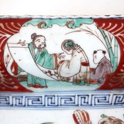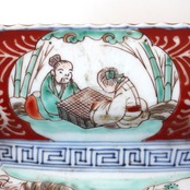 この一客のみで入手したのですが、もしかしたら、もとは本品と対となる同形同寸の皿があって、そちらには「琴」や「書」の図が描かれていたのかもしれません。