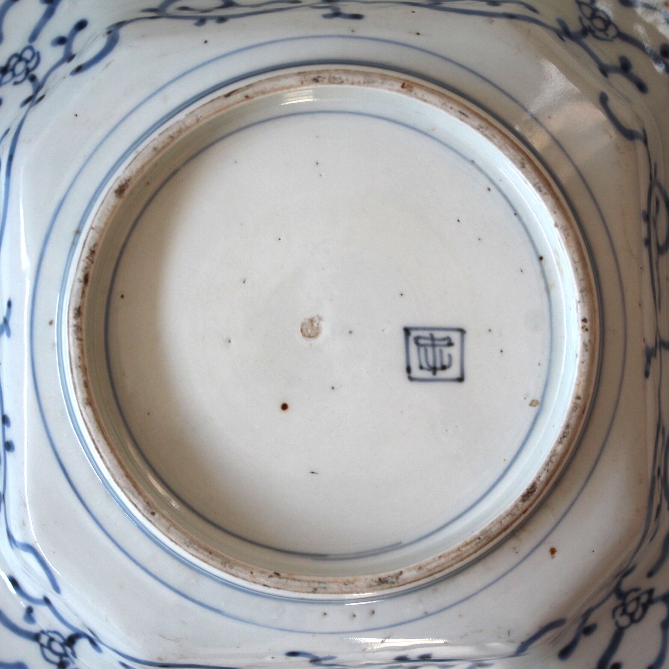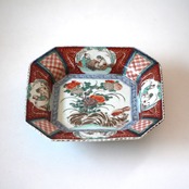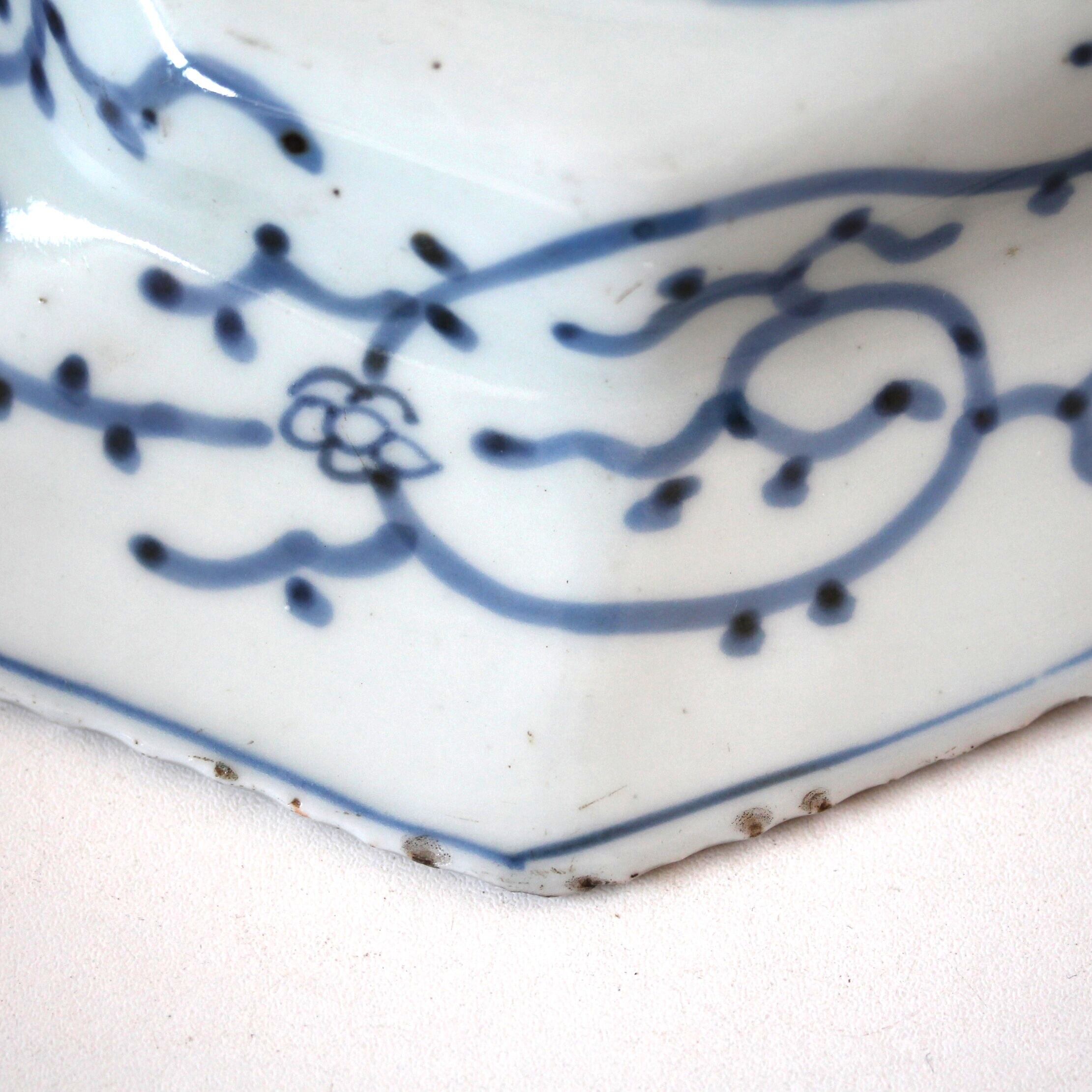 菊がモチーフとなった、古伊万里の隅切形のうつわです。