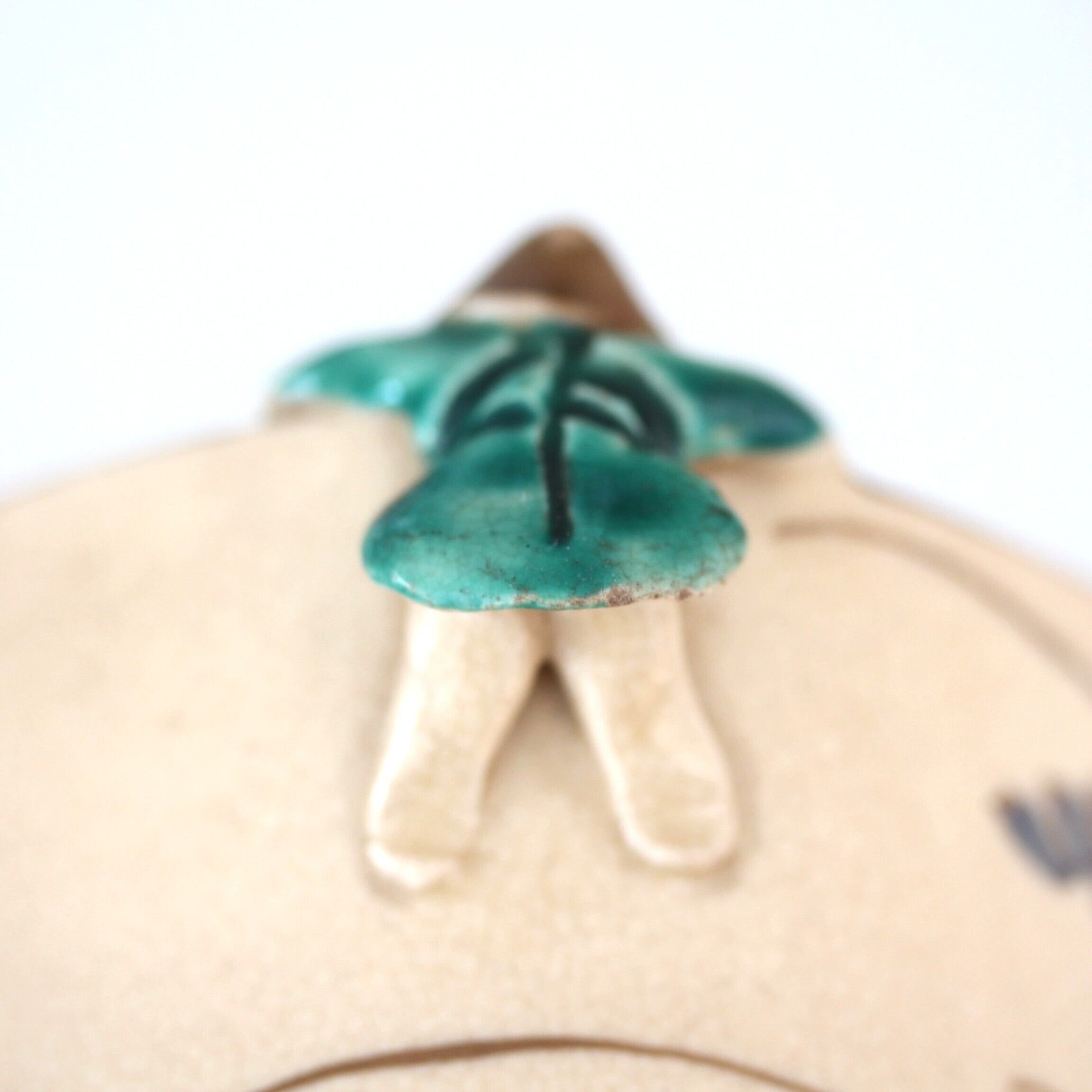 井戸をのぞきこむかのように、笠をかぶった人形が口縁の一角に貼り付けられています。