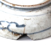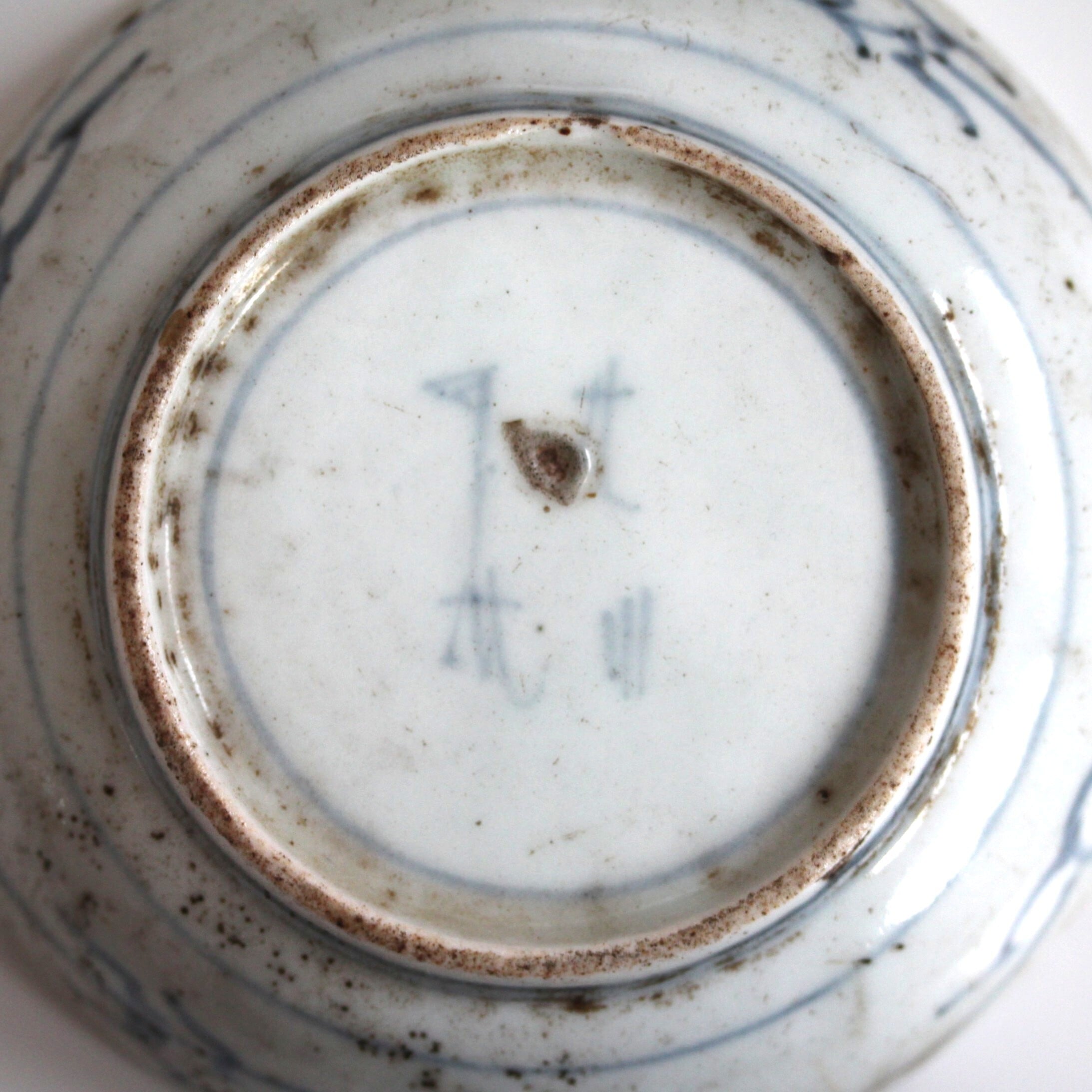 佐賀県立九州陶磁文化館の柴田夫妻コレクションに、1690年代~1740年代の作品とされるほぼ同じサイズ、同じデザインの皿が収蔵されていますが、本品の方が上述した斜面の傾斜がゆるくなっています。
