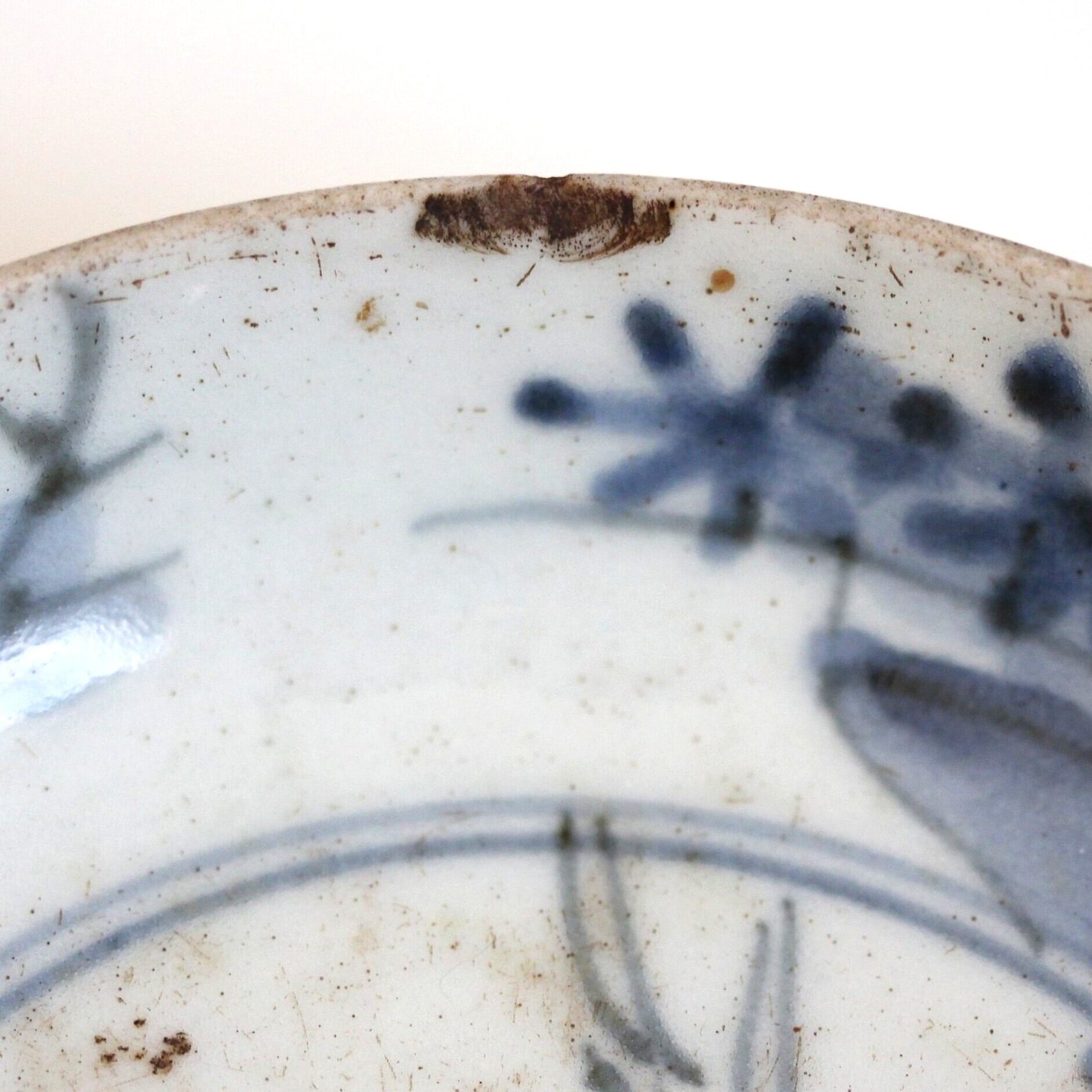 佐賀県立九州陶磁文化館の柴田夫妻コレクションに、1690年代~1740年代の作品とされるほぼ同じサイズ、同じデザインの皿が収蔵されていますが、本品の方が上述した斜面の傾斜がゆるくなっています。