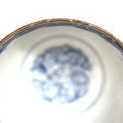 内面は見込に花唐草を描き、また口縁には瓔珞文をめぐらせています。