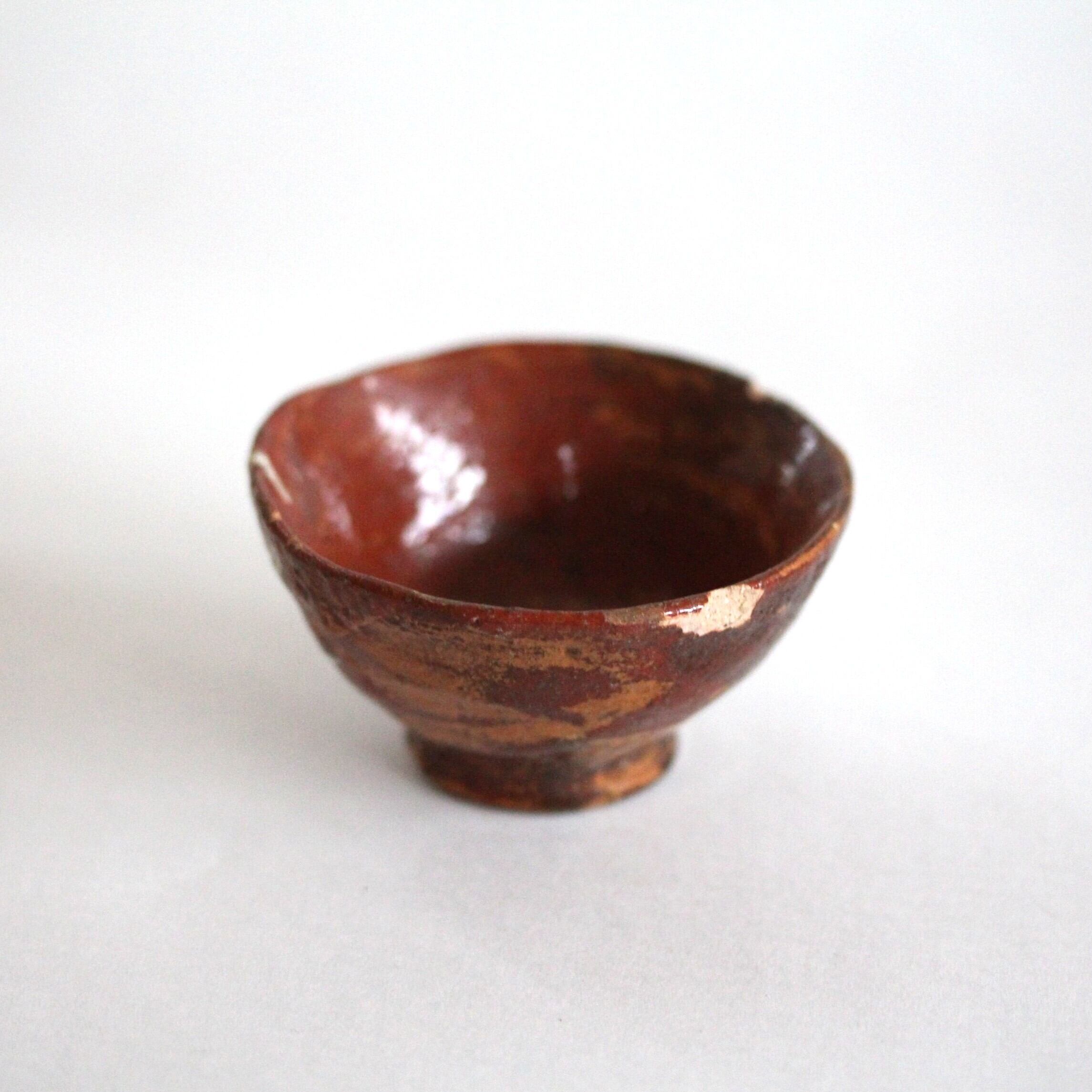 欠けのある赤楽紅葉文盃 d6.6cm Chipped Red Raku Ware Cup, Design of White Momiji Maple Leaf 19th-20th C