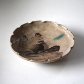 小さな欠けのある墨流し輪花石皿 d22.2cm Minor Chipped Stoneware Lobed Dish, Suminagashi Marbling Pattern 19th-20th C | Broken and Repaired / キズトツクロイ
