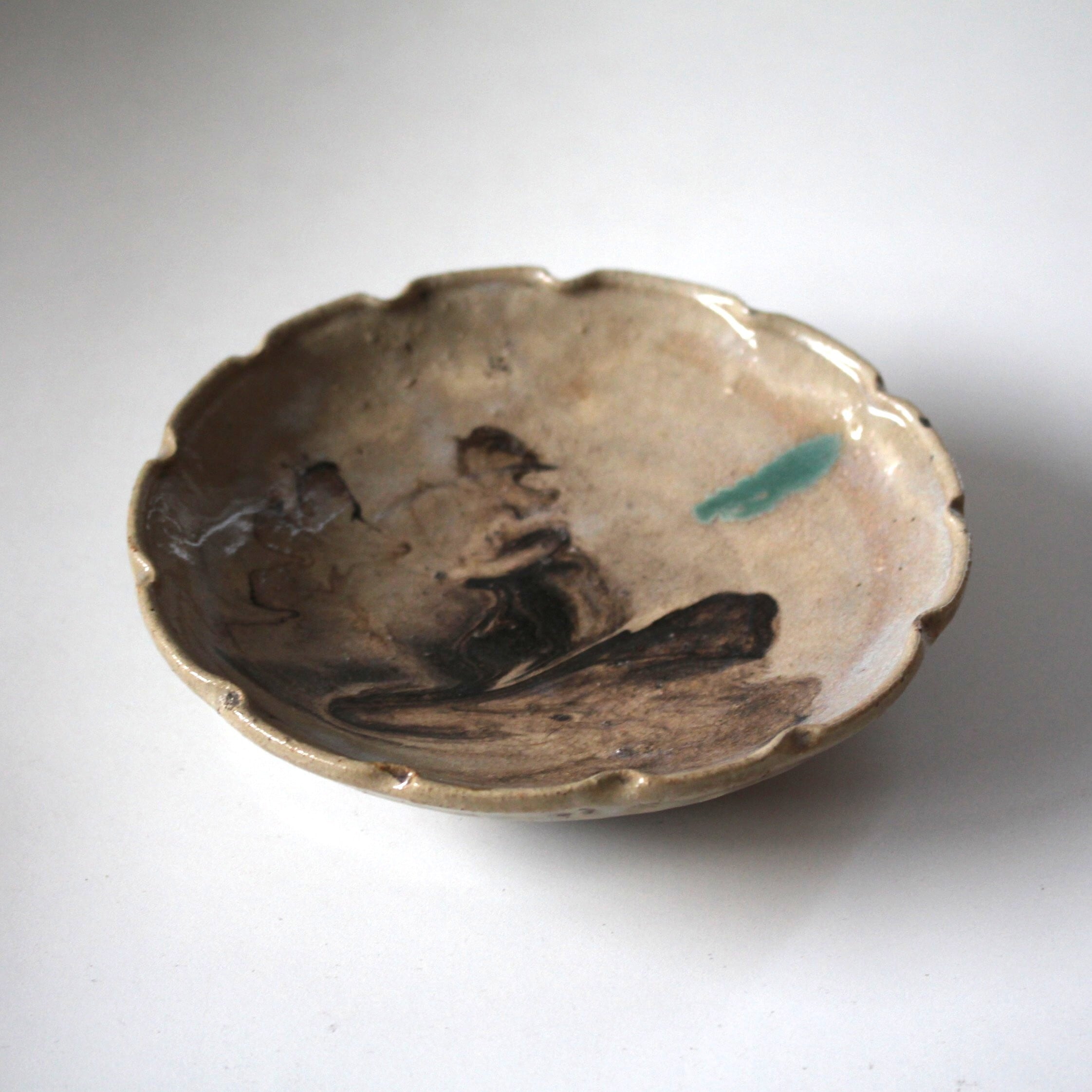 A charming stoneware lobed dish, with suminagashi marbeling pattern.