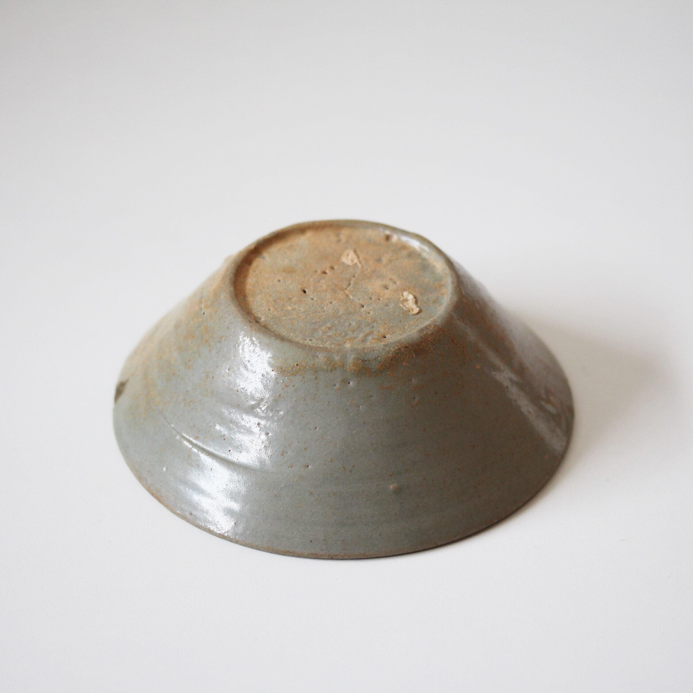繕いのある高麗青磁陰刻輪線文鉢 d13.9cm Repaired Korean Goryeo Celadon Bowl, Engraved Lines 13th-14th C | Broken and Repaired / キズトツクロイ