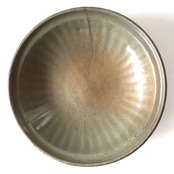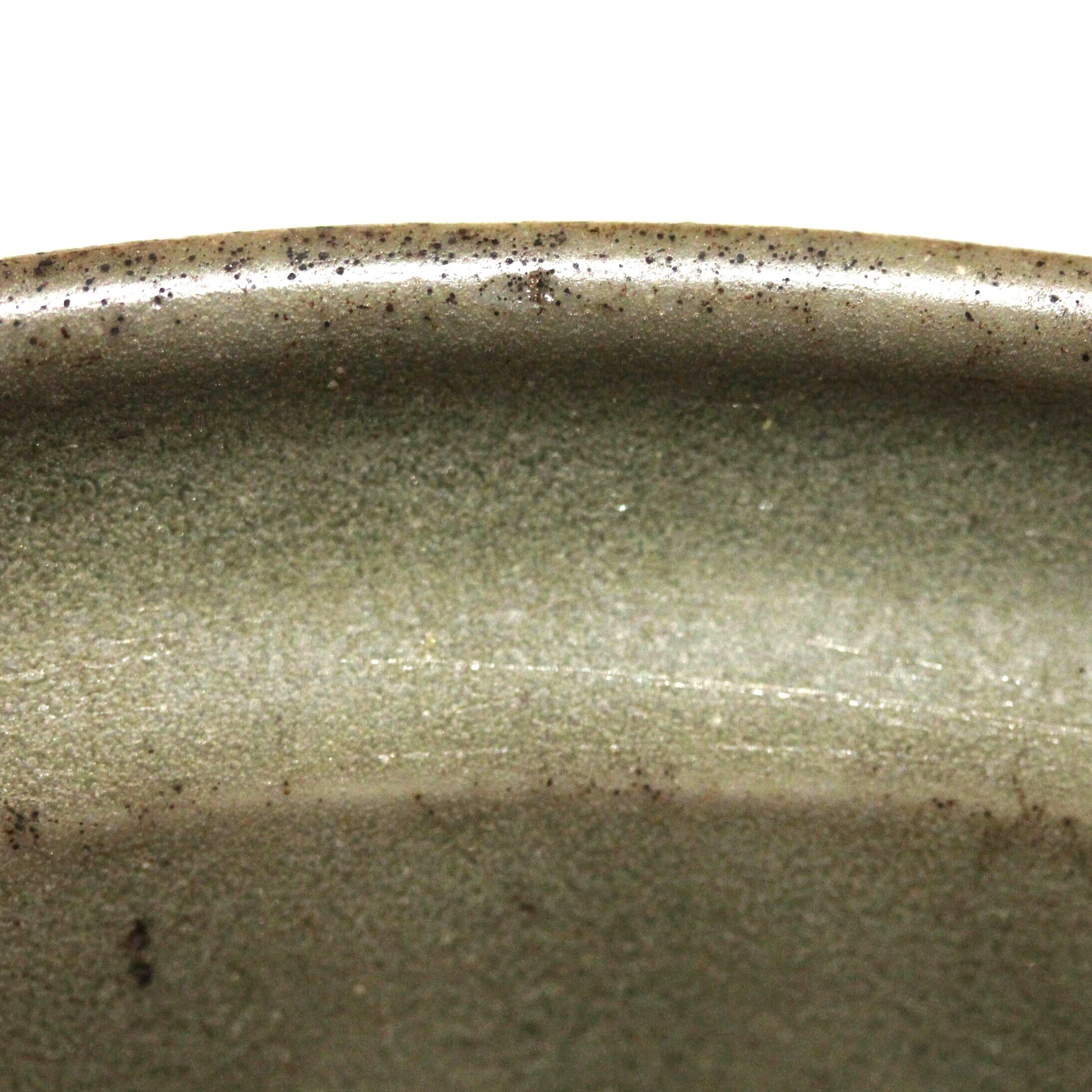 窯の中の焼成温度が少し低めだったのでしょう。表裏に貫入が生じているほか、やや黄味がかって発色した箇所が見られます。
