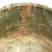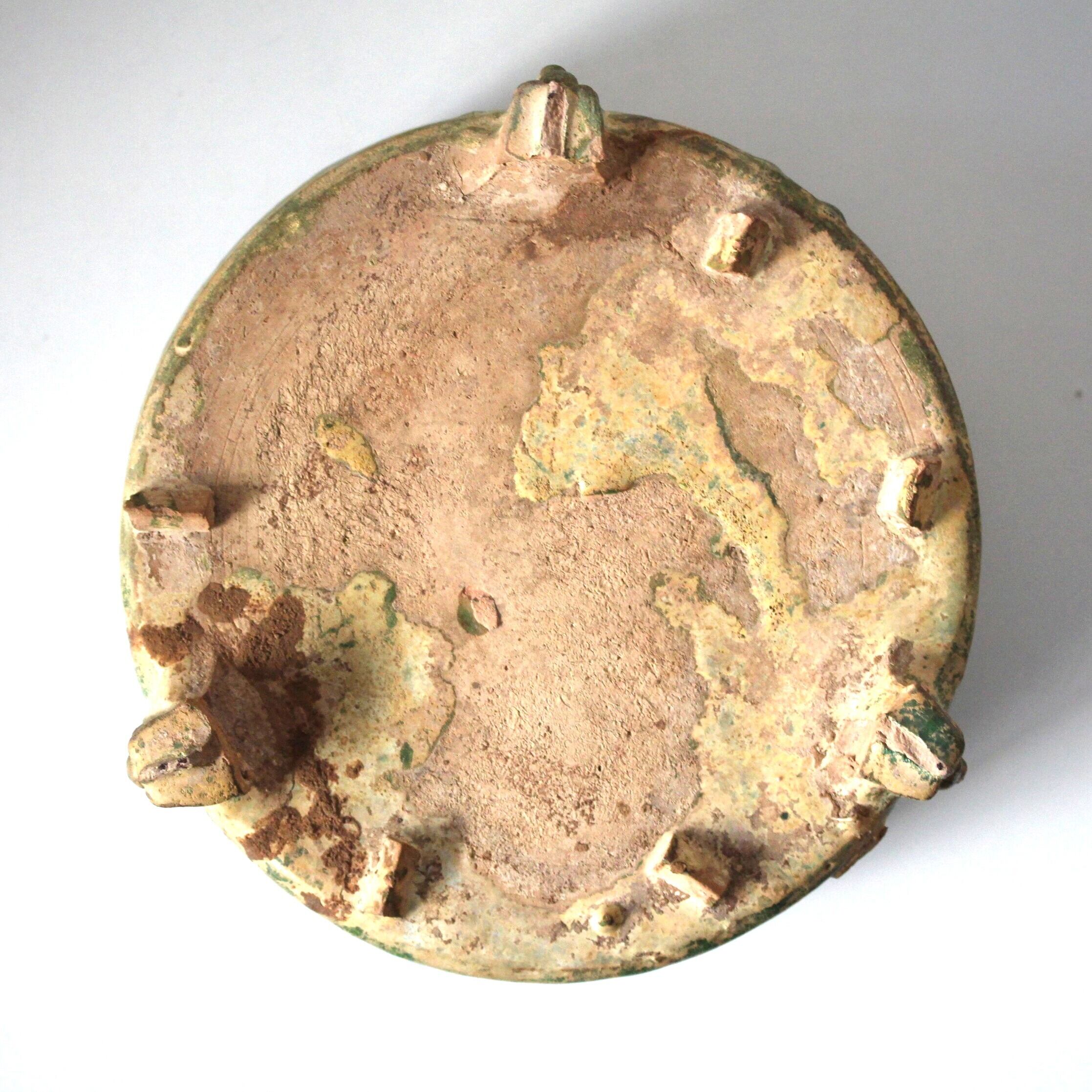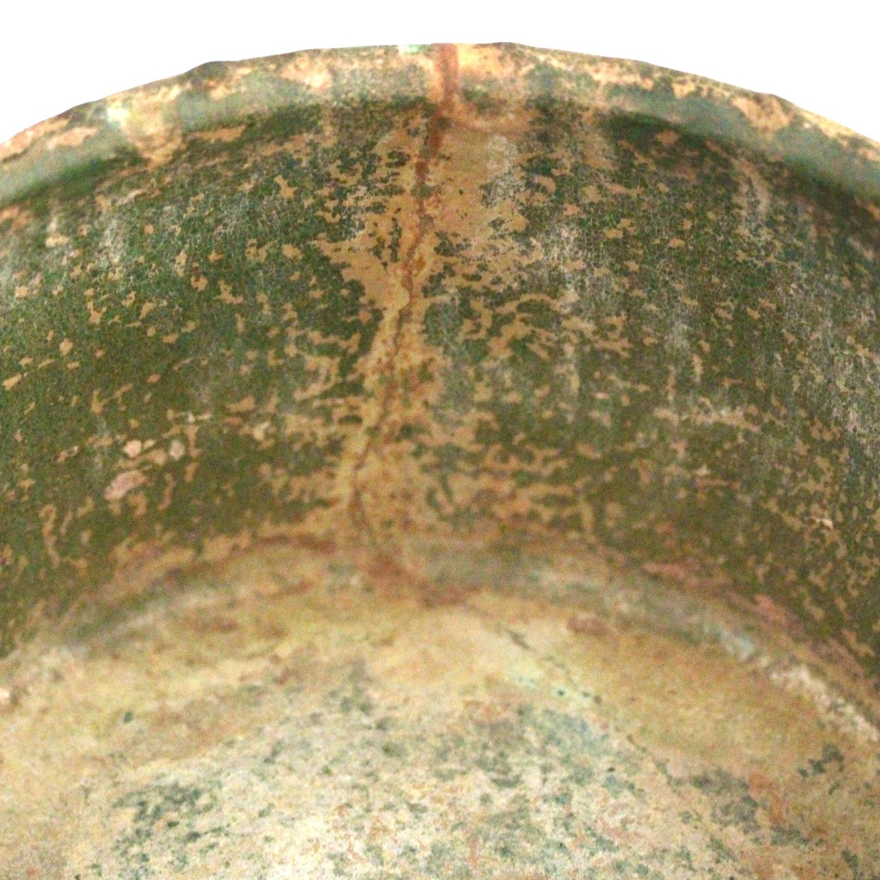 繕いのある銀化緑釉熊足温酒尊 d24.1cm Repaired Iridescent Green Glazed Wine Vessel with Three Bear Shaped Legs 1st BC-2nd C | Broken and Repaired / キズトツクロイ