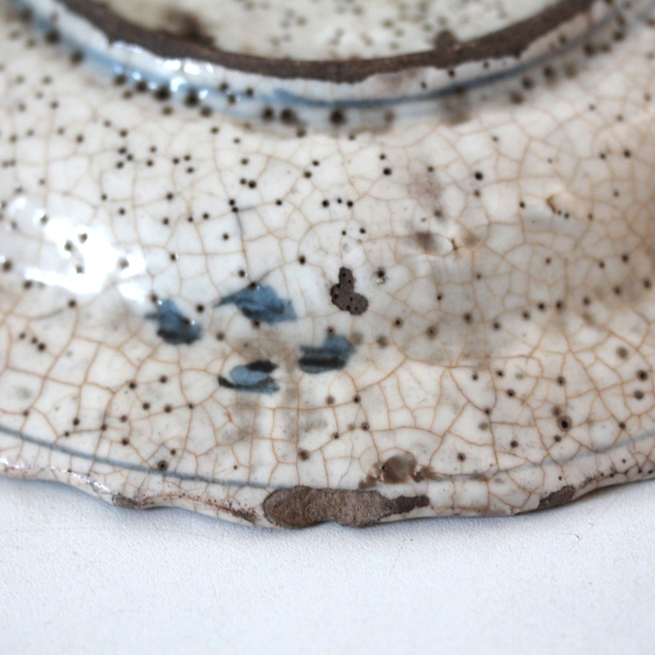割れ欠けのある志手原(三田)焼芙蓉手鹿文輪花皿 d16.2cm Chipped and Cracked Shidehara (Sanda) Blue and White Kraak Patterned Lobed Dish, Deer Design 19th C | Broken and Repaired / キズトツクロイ