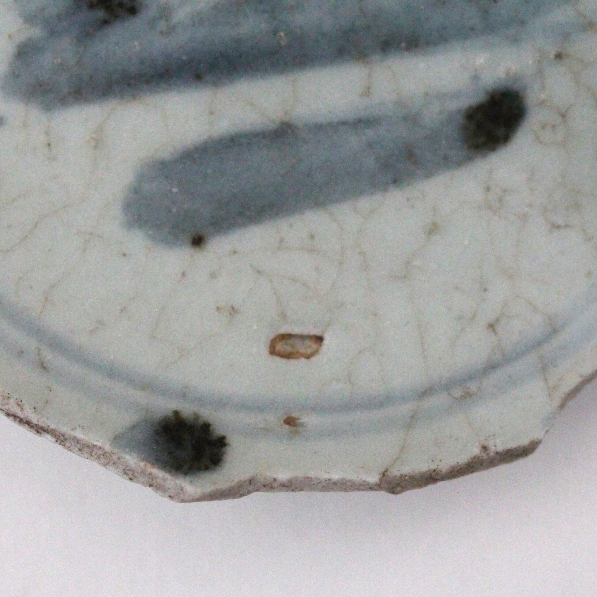 陶片 初期伊万里染付草露文皿(その2)d11.2cm Shard, Early Imari Blue and White Dish, Design of Dew on Grasses 17th C | Broken and Repaired / キズトツクロイ