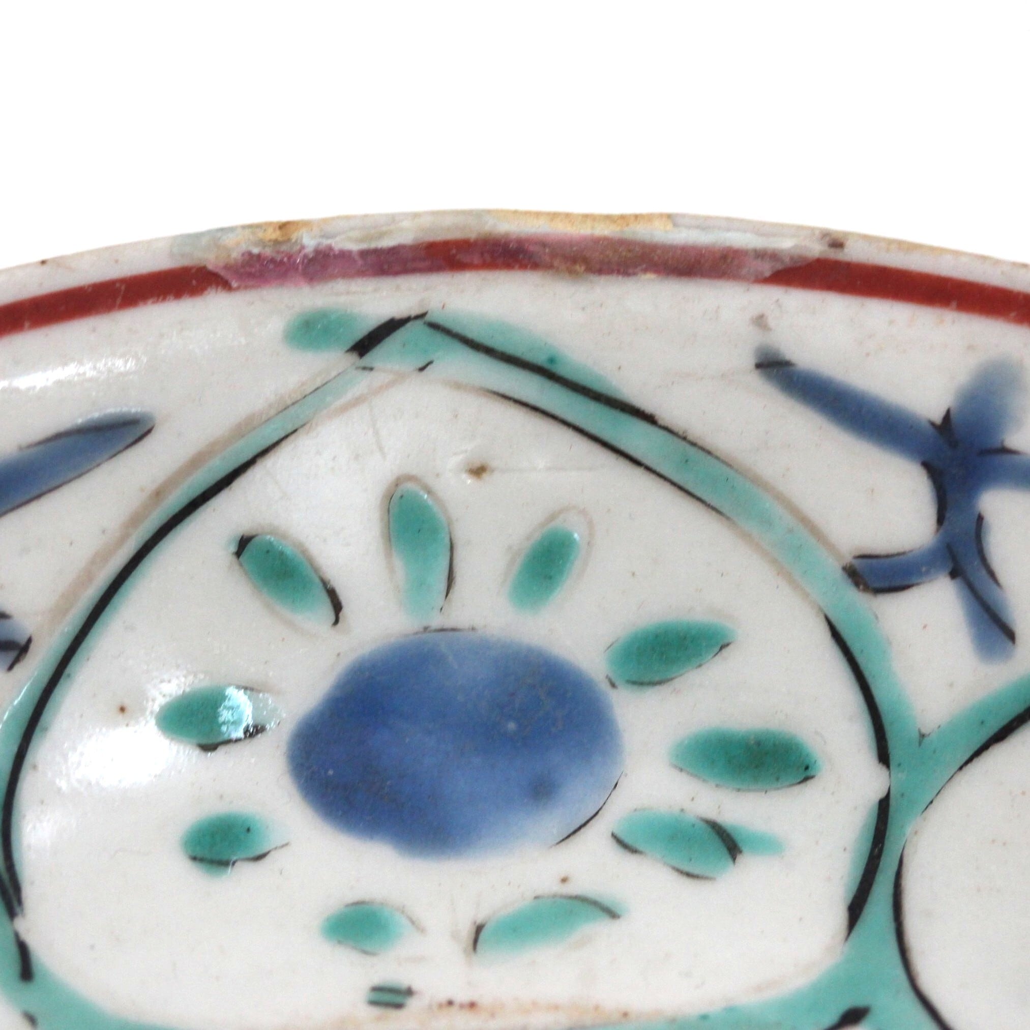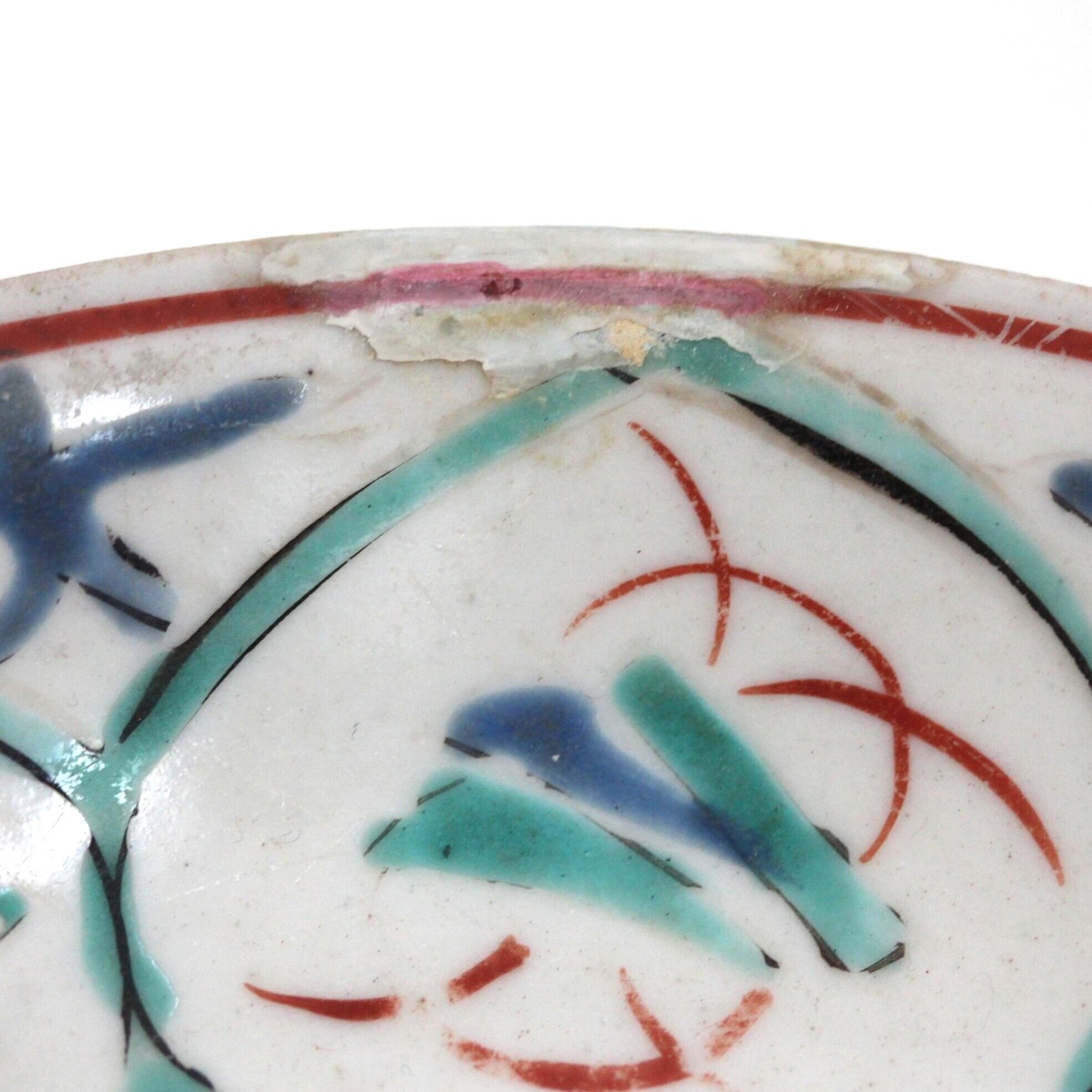 Condition : Repaired chips on the rim. Color glaze peeled off slightly.
