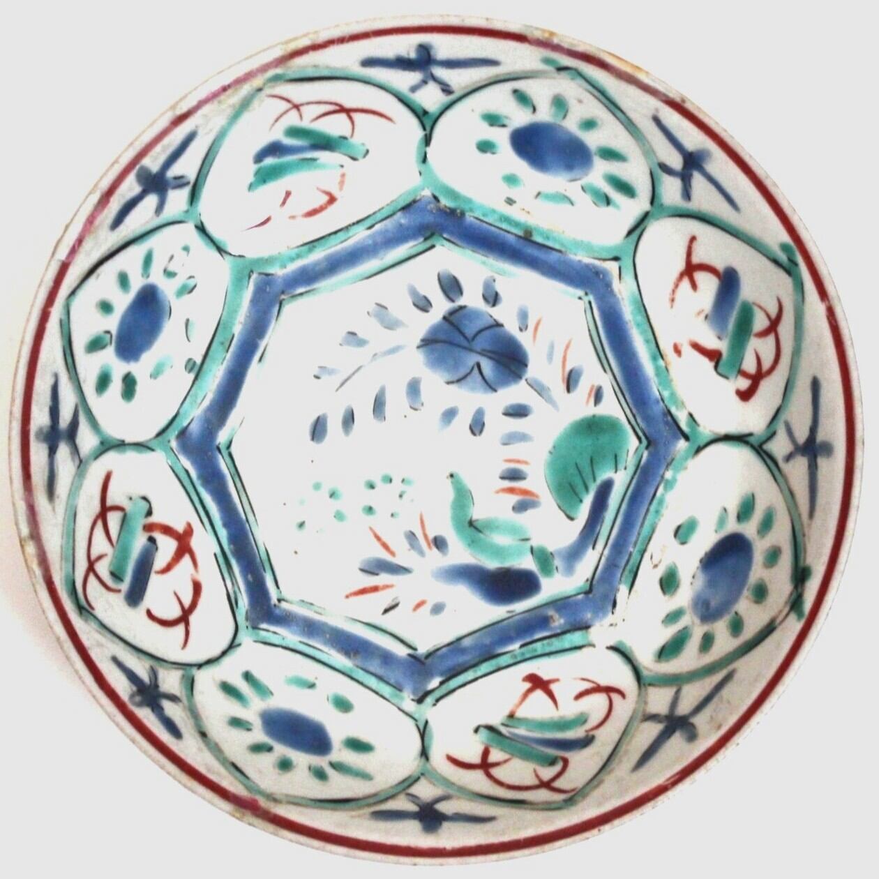 補修のある初期柿右衛門色絵芙蓉手水禽文小皿 d14.0cm Repaired Kakiemon Kraak Pattern Small Dish, Waterfowl Design 17th C