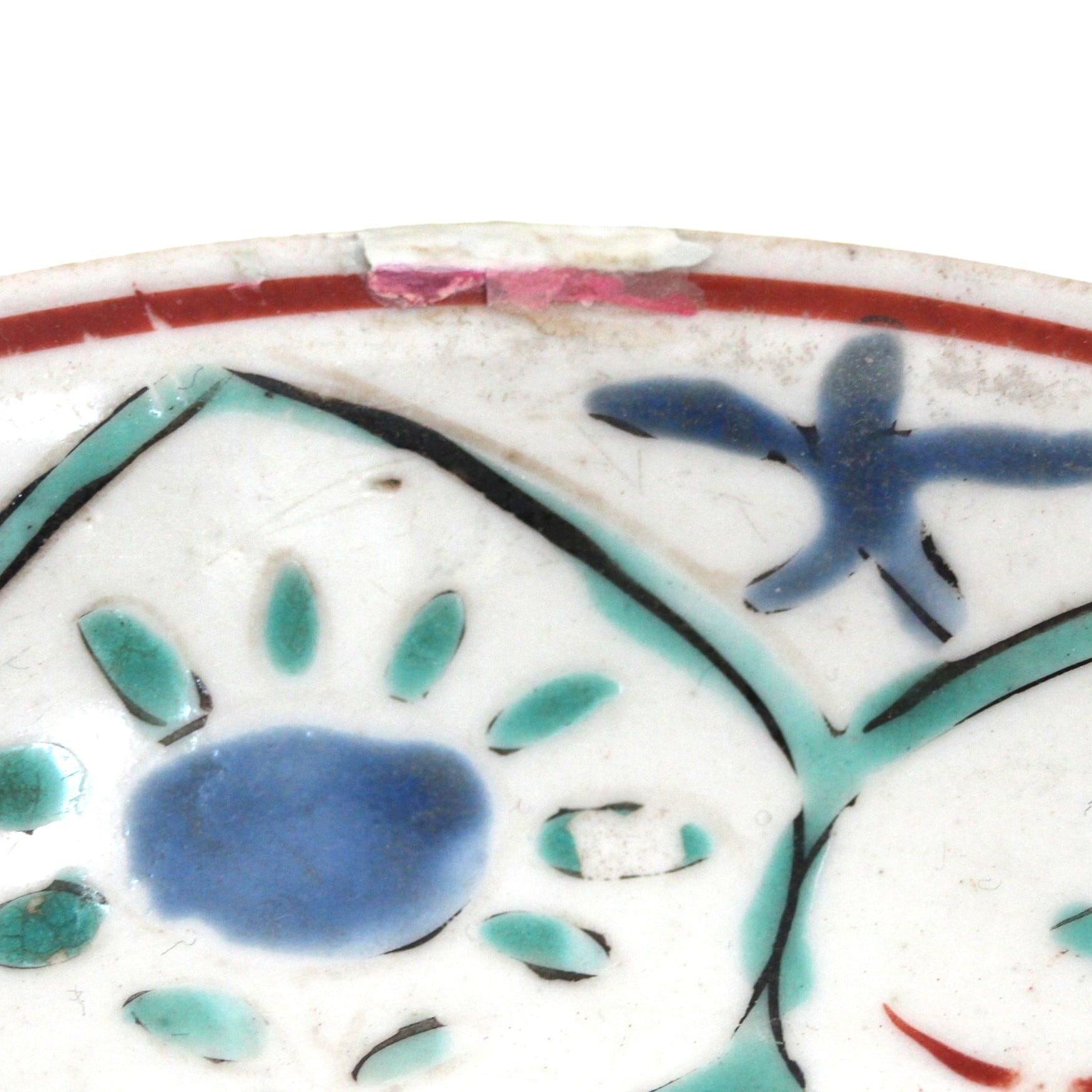 口縁の欠けを補修し、文様を加筆しています。