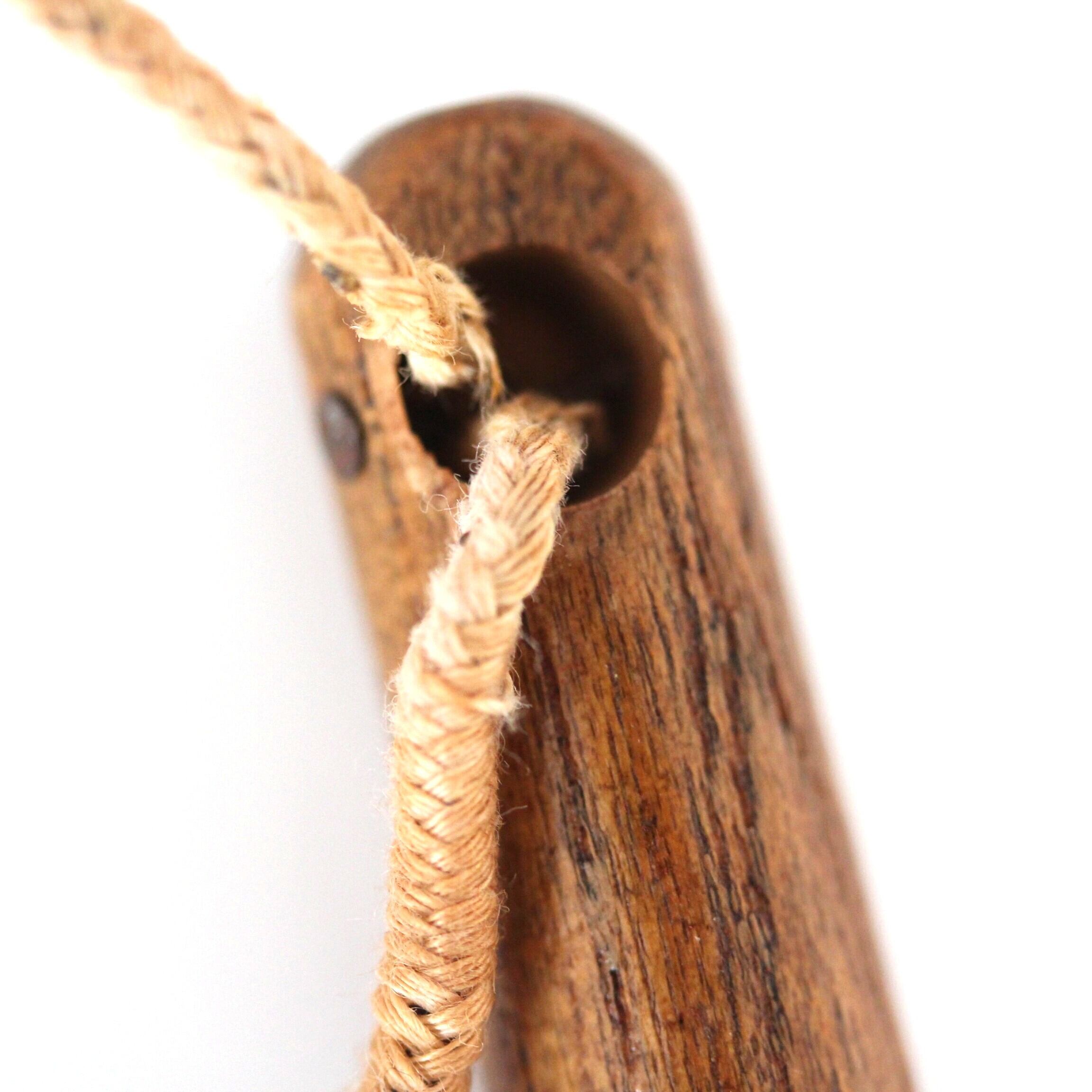 手足の先は鉤形となっていて、直置きのほか、壁に掛けることもできるようになっているのですが・・・右肩を骨折しています。オリジナルの紐が切れてしまいました。
