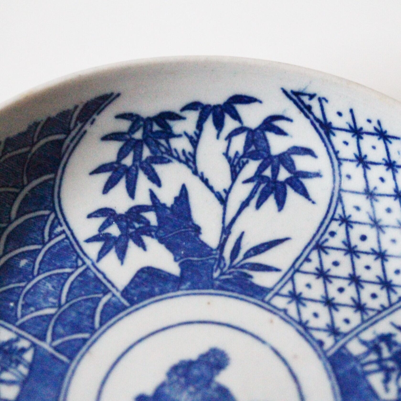 欠けのある印判獅子鹿文小皿 d13.8cm Chipped Inban Blue and White Small Dish with Design of Lion and Deer 19th-20th C | Broken and Repaired / キズトツクロイ