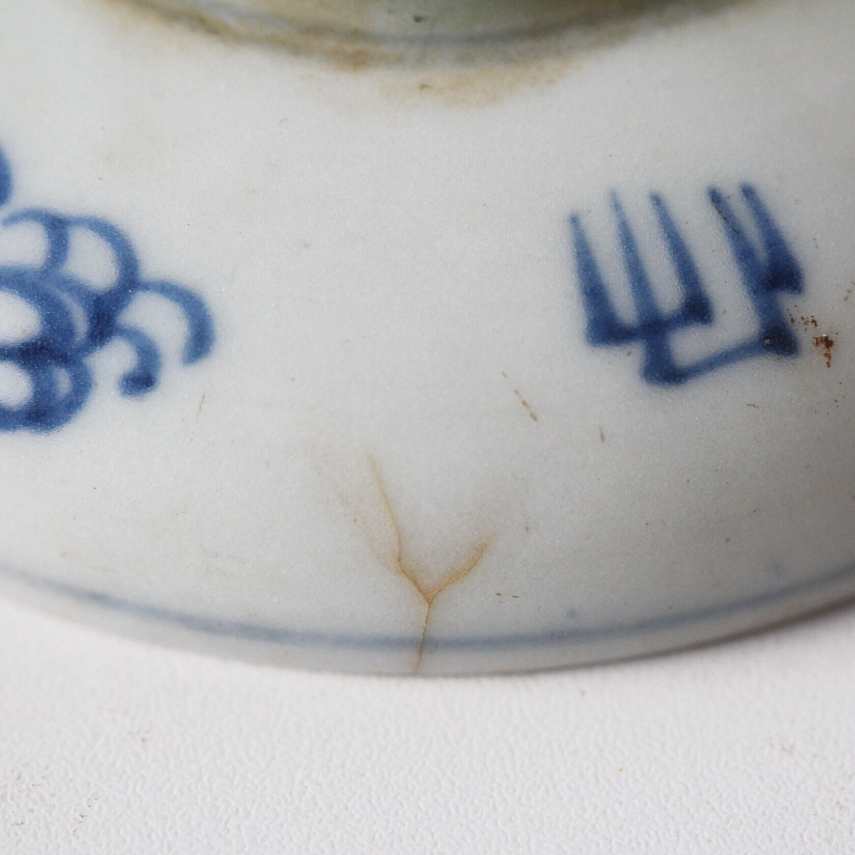 割れのある染付柳燕文小皿(その2)d11.1cm Cracked Blue and White Small Dish with Design of Swallows under Willow. 19th-20th C | Broken and Repaired / キズトツクロイ