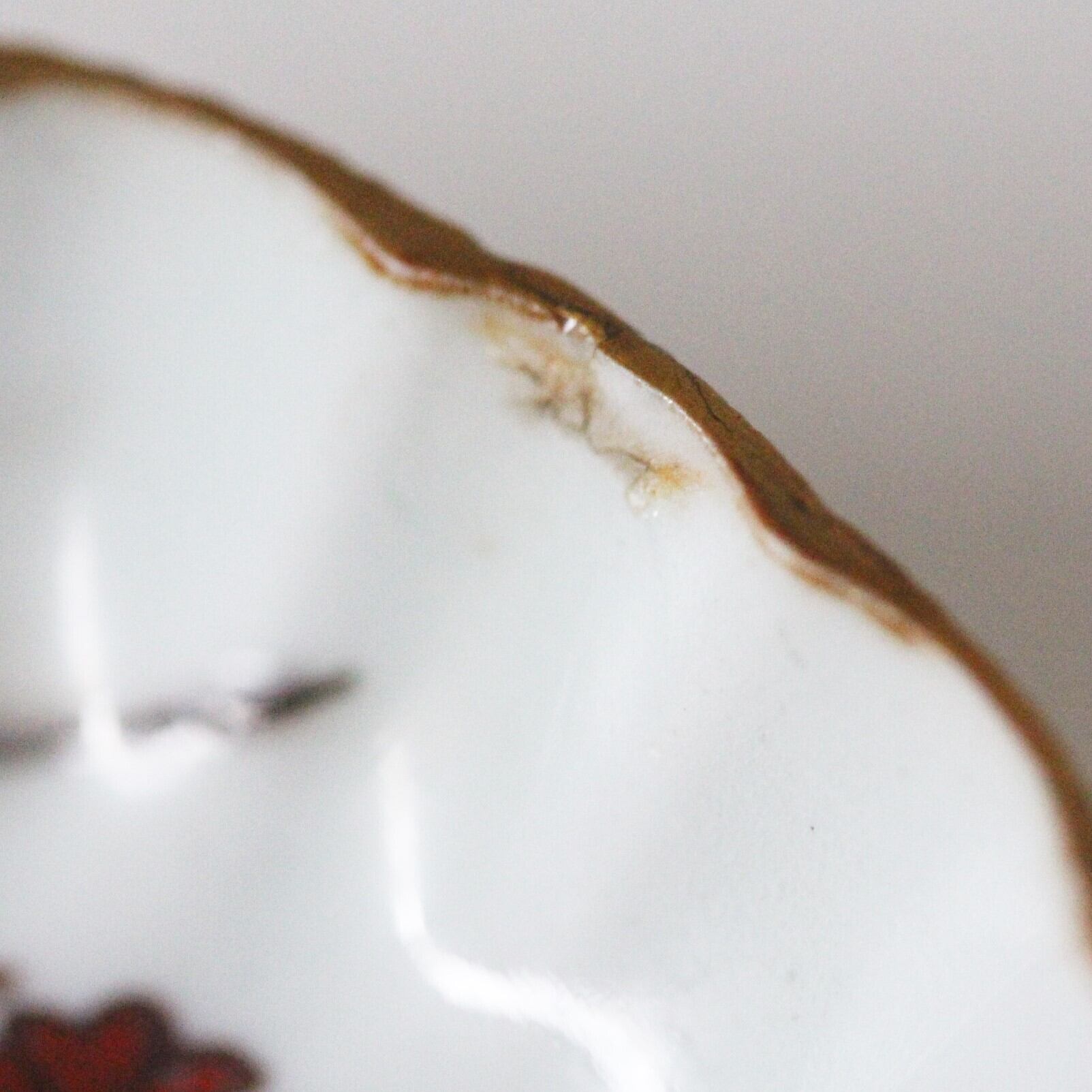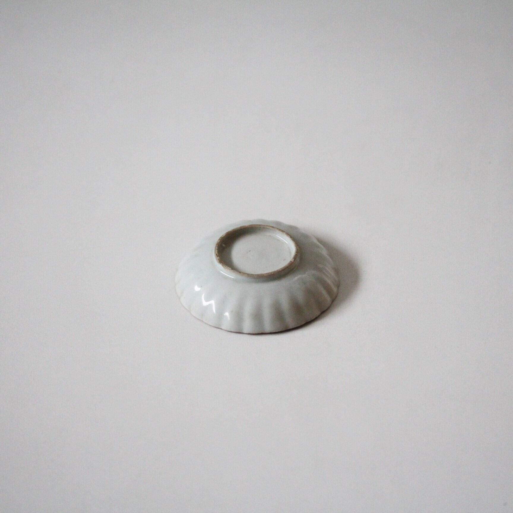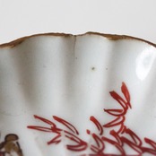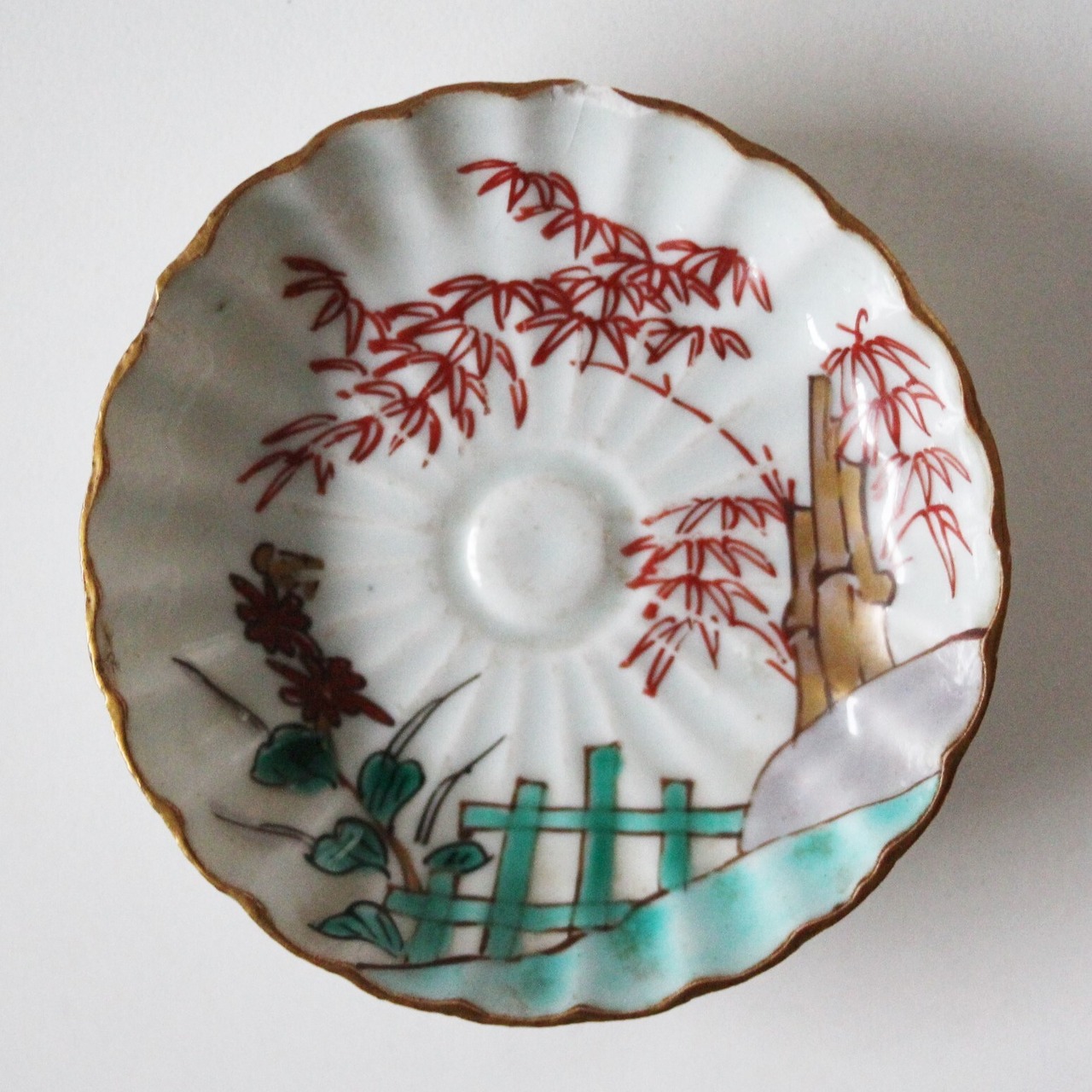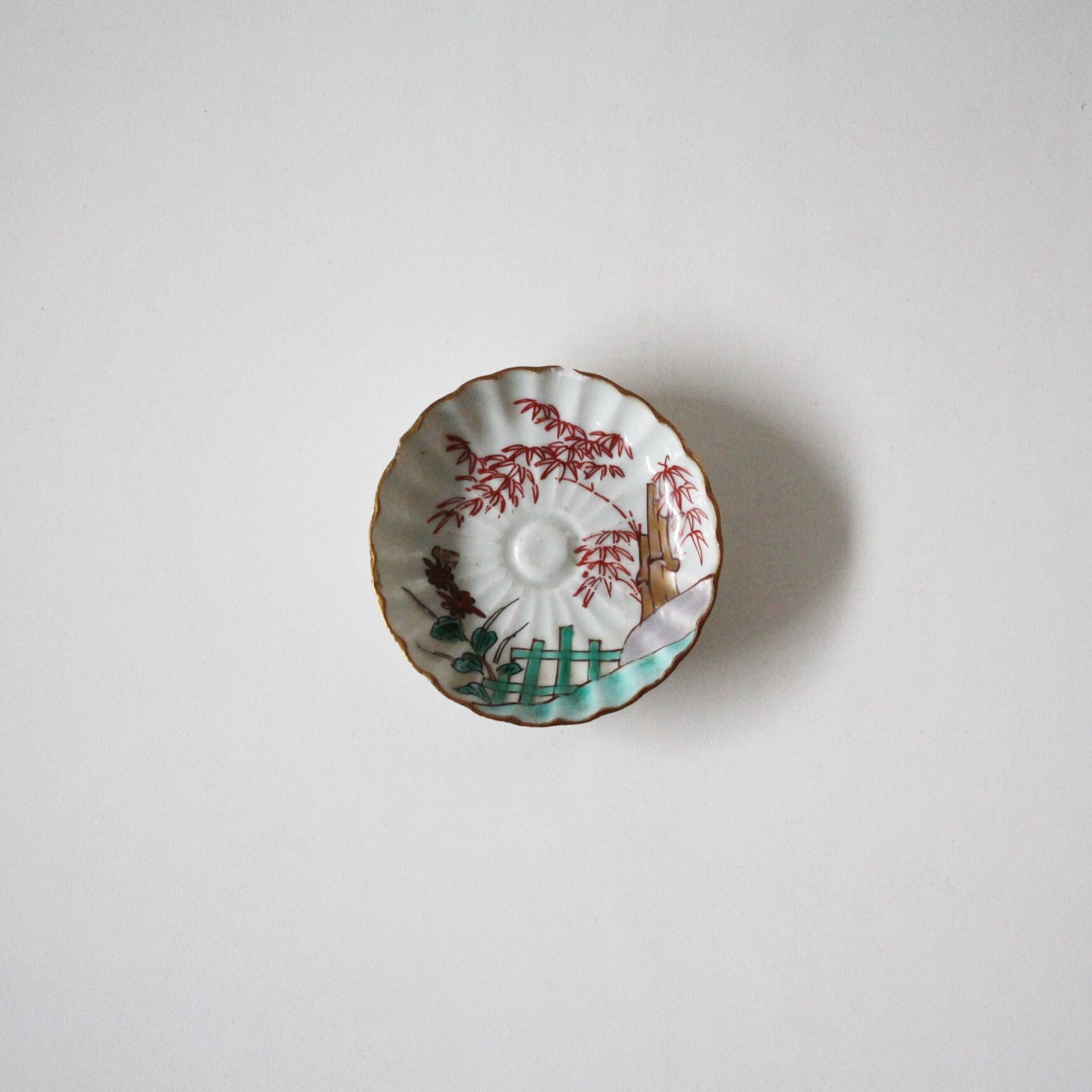割れ欠けのある古伊万里色絵竹文輪花豆皿(その2)d8.5cm Chipped and Cracked Imari Enameled Small Lobed Dish, Shining Bamboo Design 19th C | Broken and Repaired / キズトツクロイ