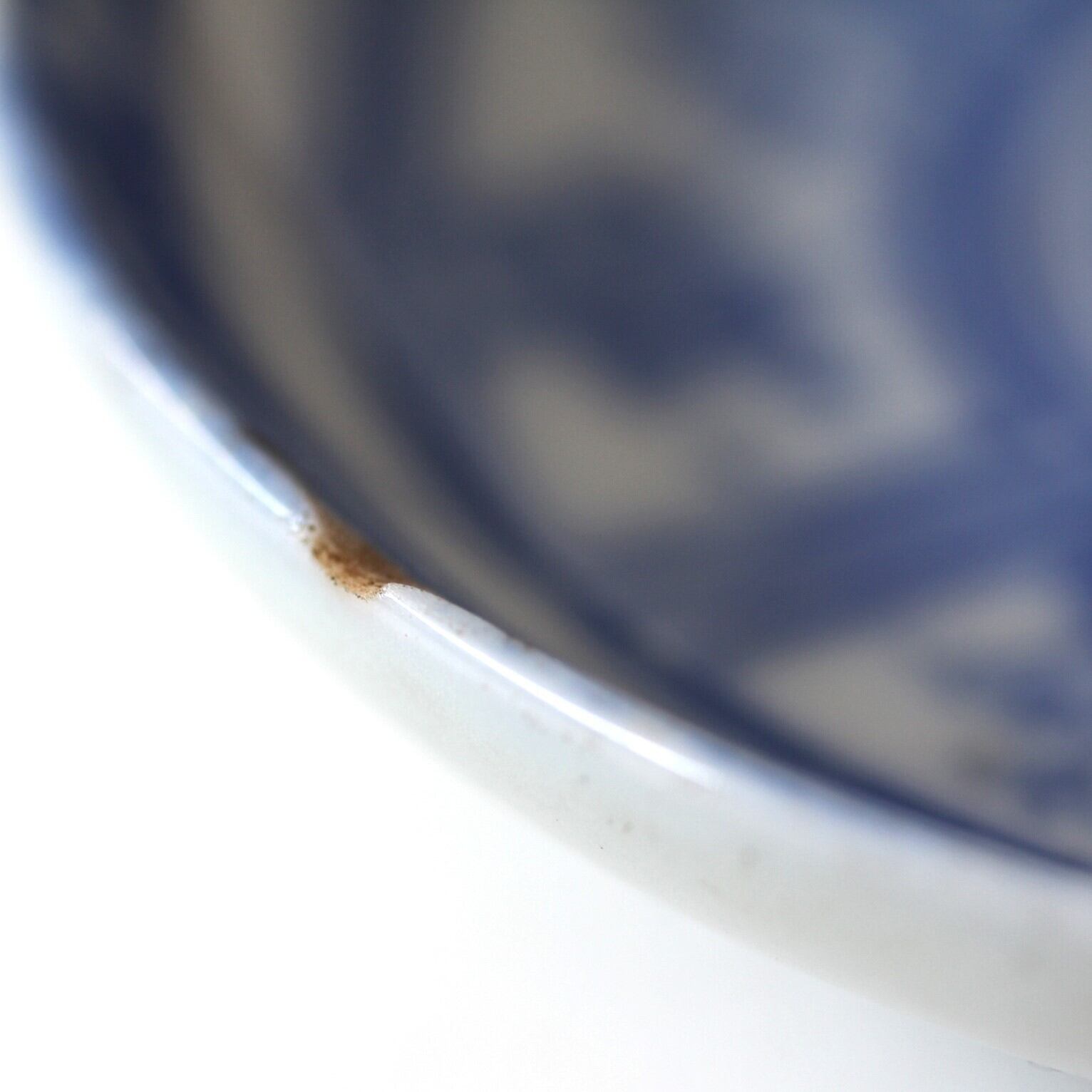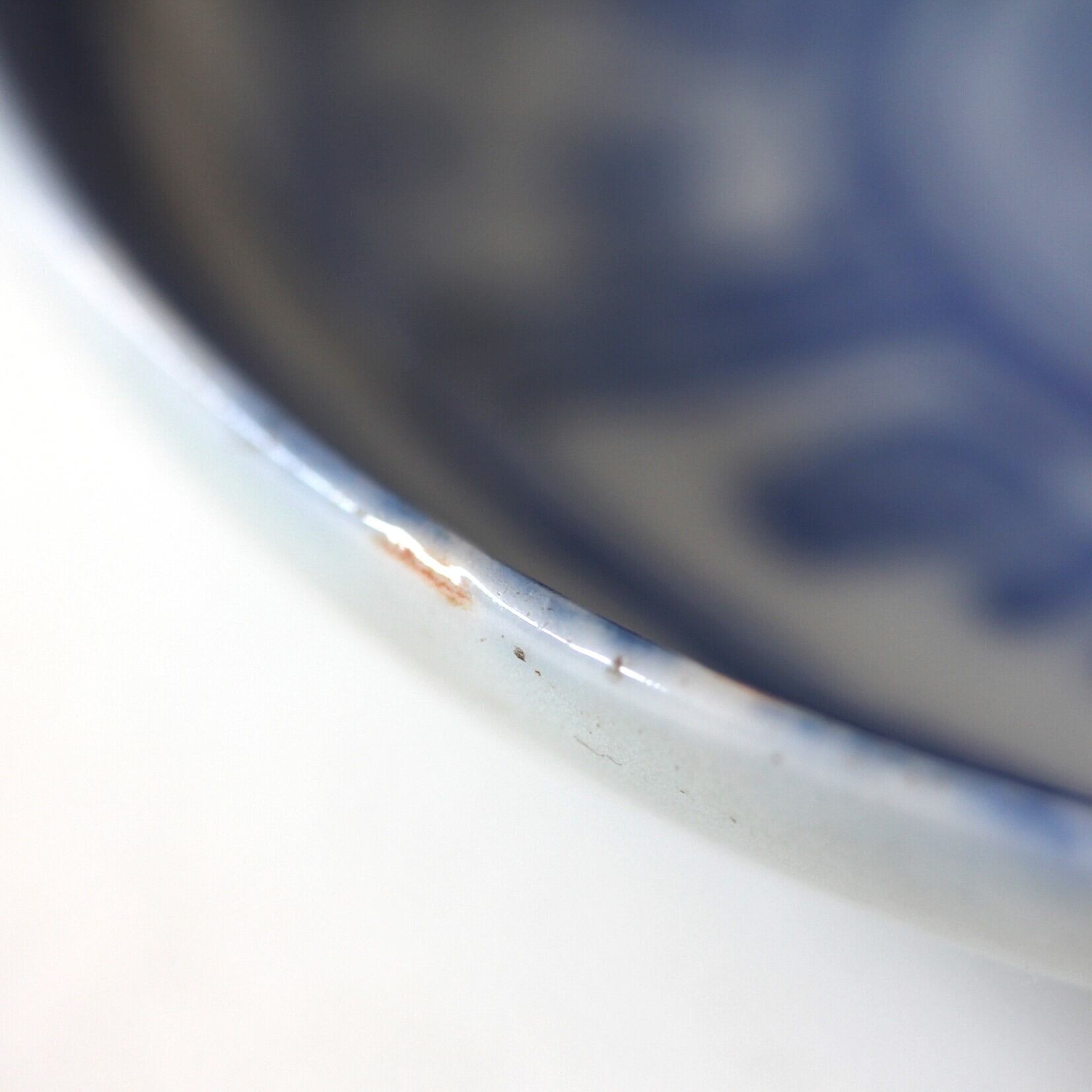 Condition : A chip on the rim. Glaze defects on the rim. Minor cracks on the surface.
