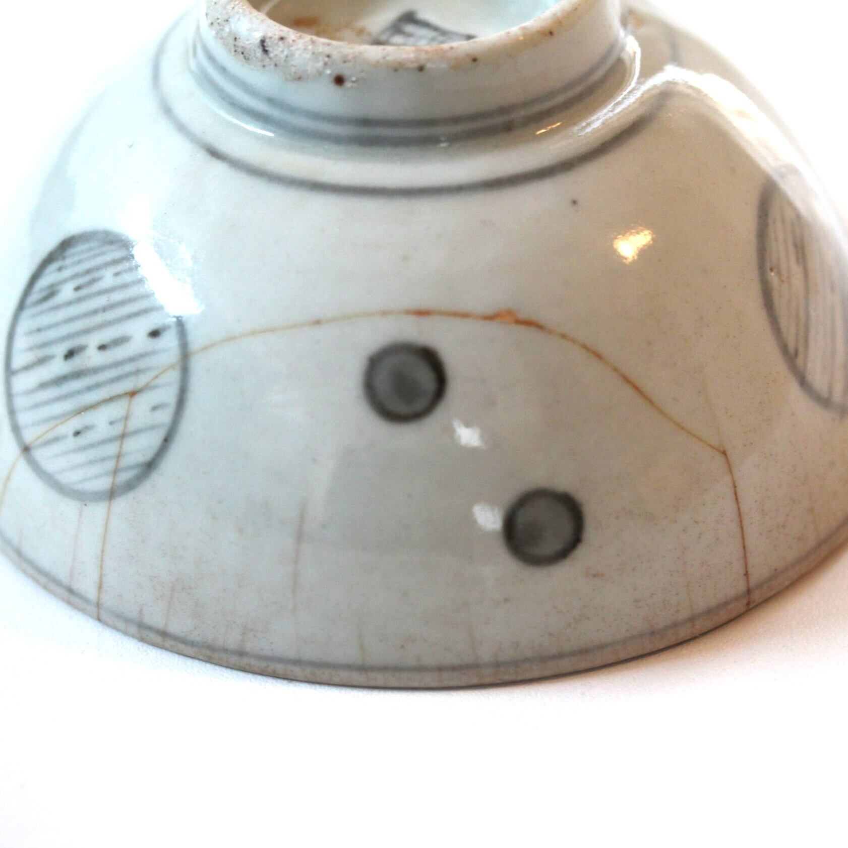 A charming blue and white bowl with circles pattern. Kurawanka type.