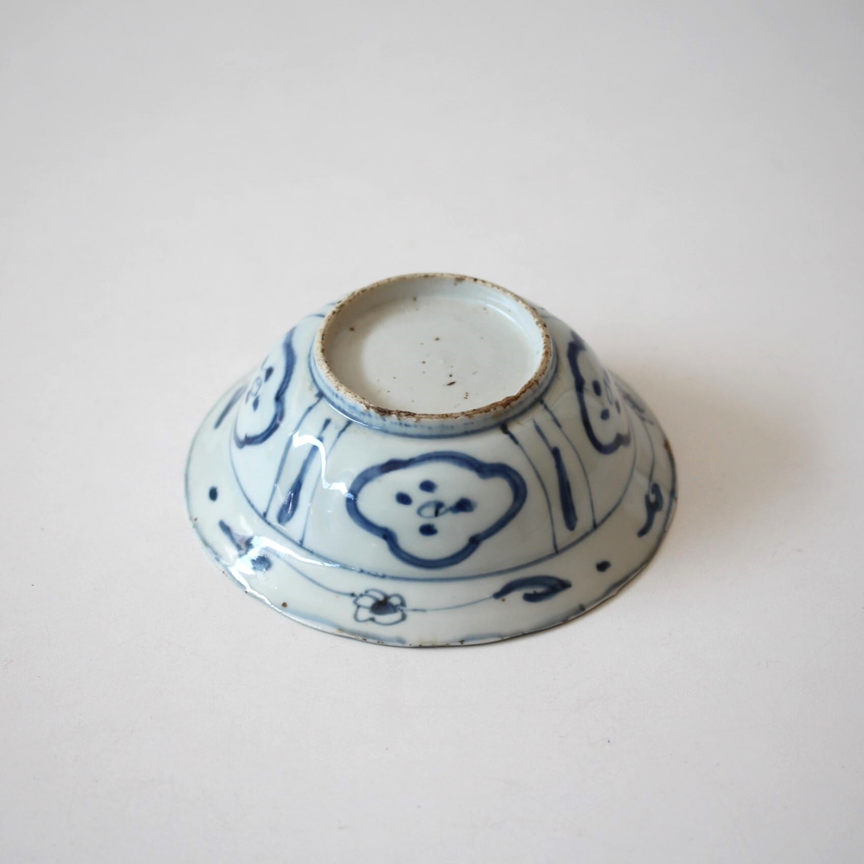 A charming blue and white porcelain bowl made in China and exported to Japan around the 17th century. Treasures are painted in the center and flowers around.