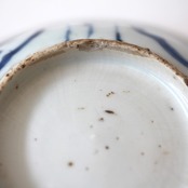 状態:口縁に虫喰い、金繕いされたホツ、ニュウ。高台にホツ、成形時の凹み。