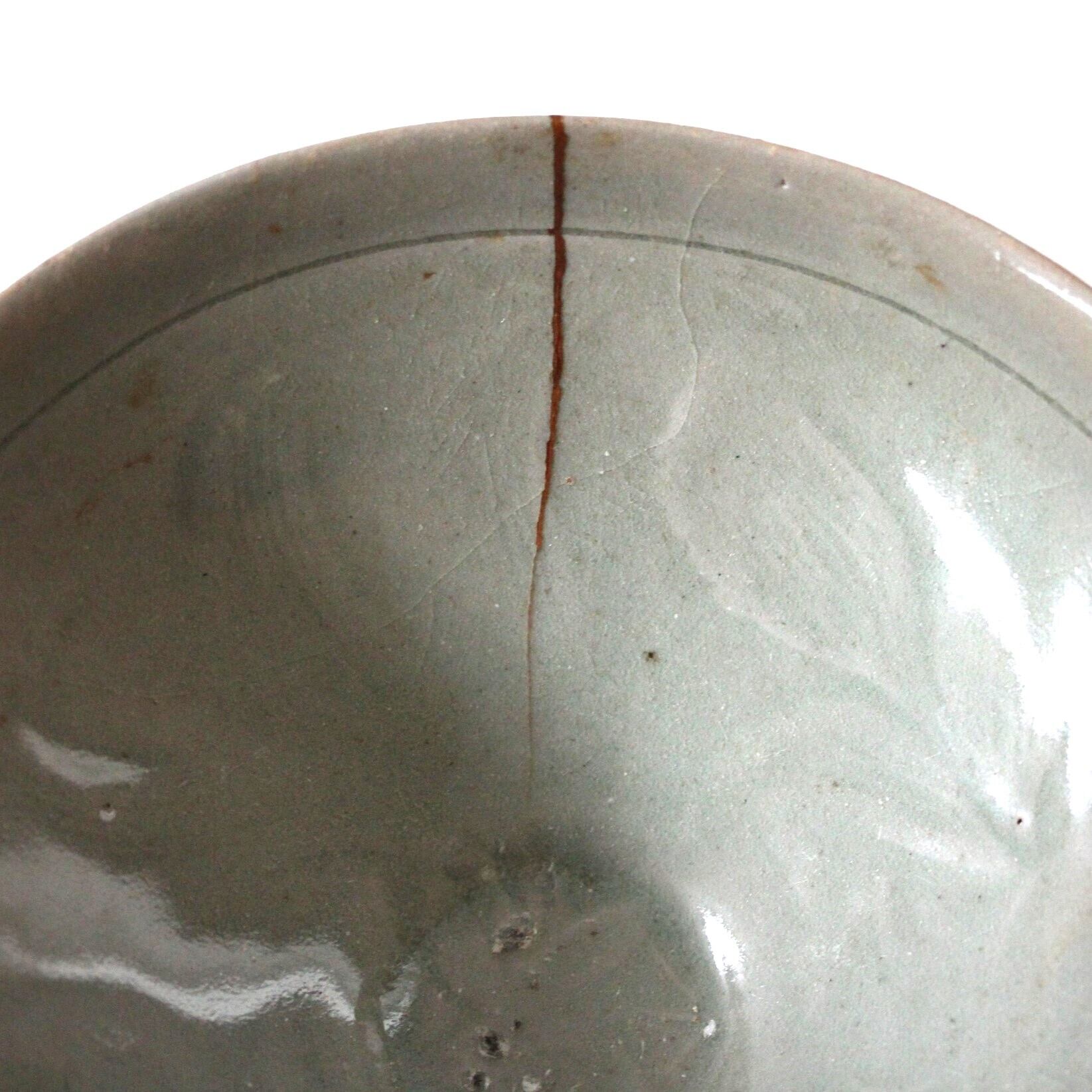 状態:ニュウを真鍮繕い(水漏れなし)貫入。見込にフリモノ。木箱(保存箱)入。