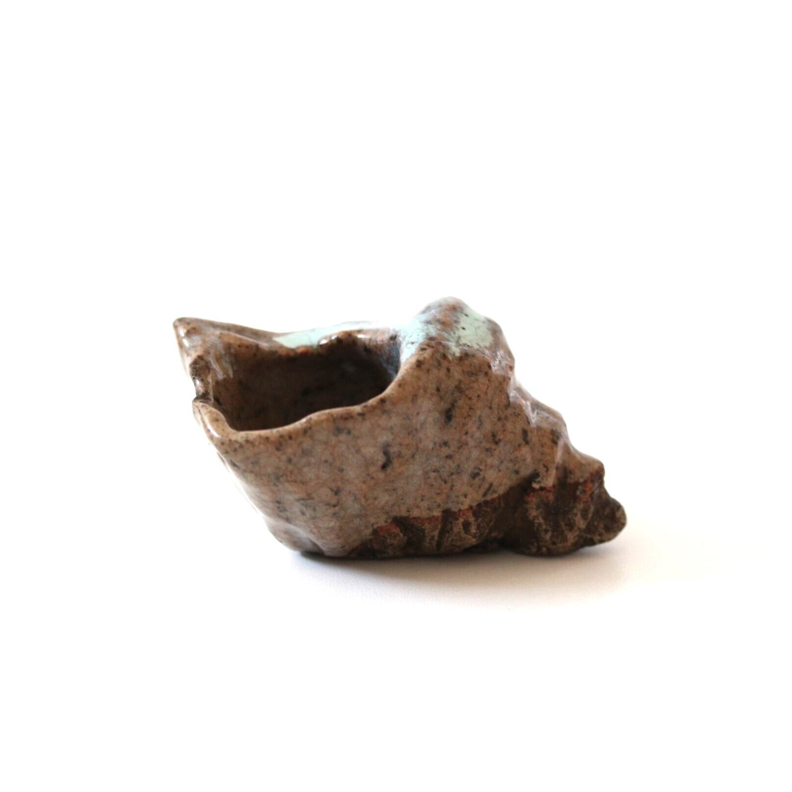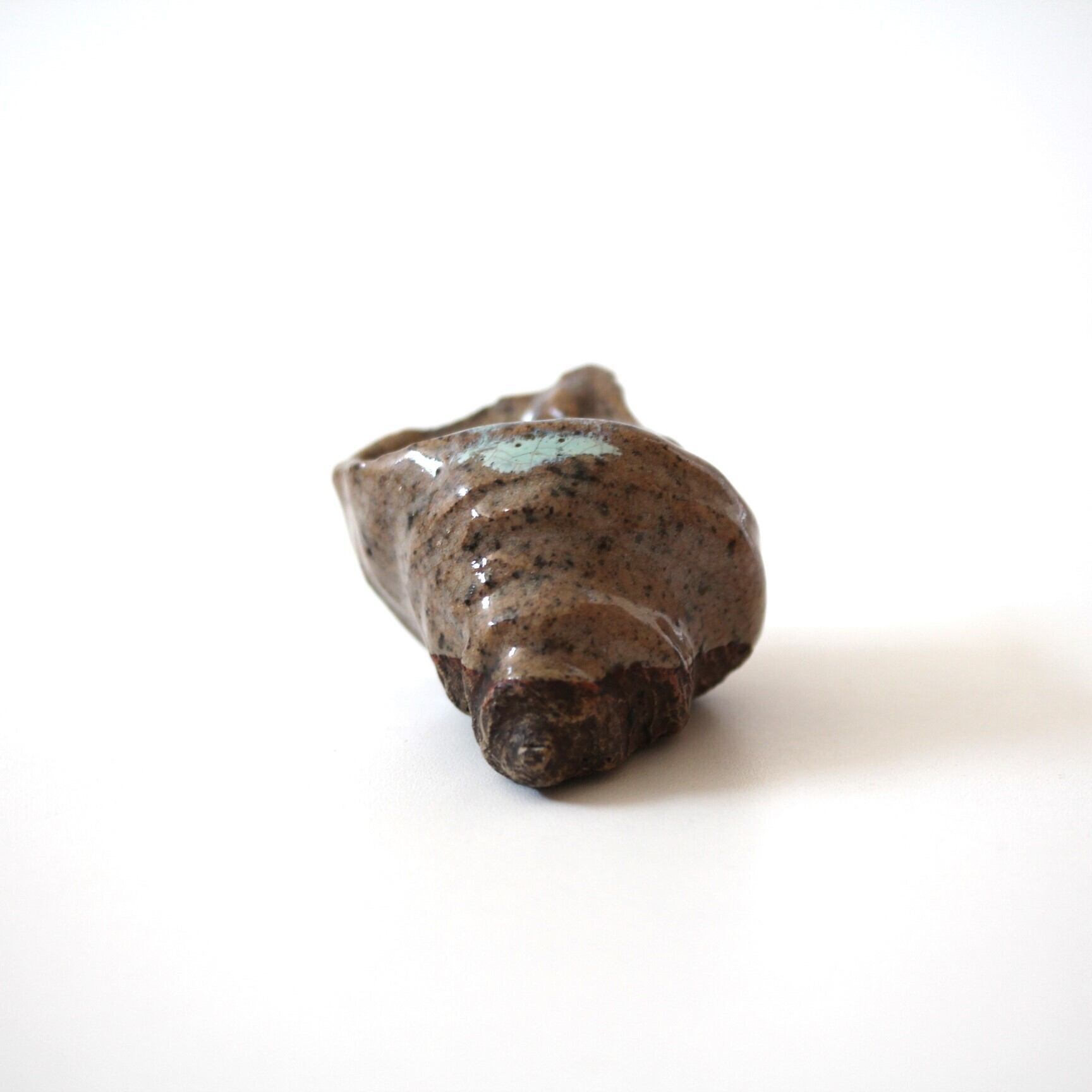 欠けのある舞子焼さざえ形猪口 l9.0cm Chipped Maiko Ware Turban Shell Shaped Cup 19th-20th C | Broken and Repaired / キズトツクロイ
