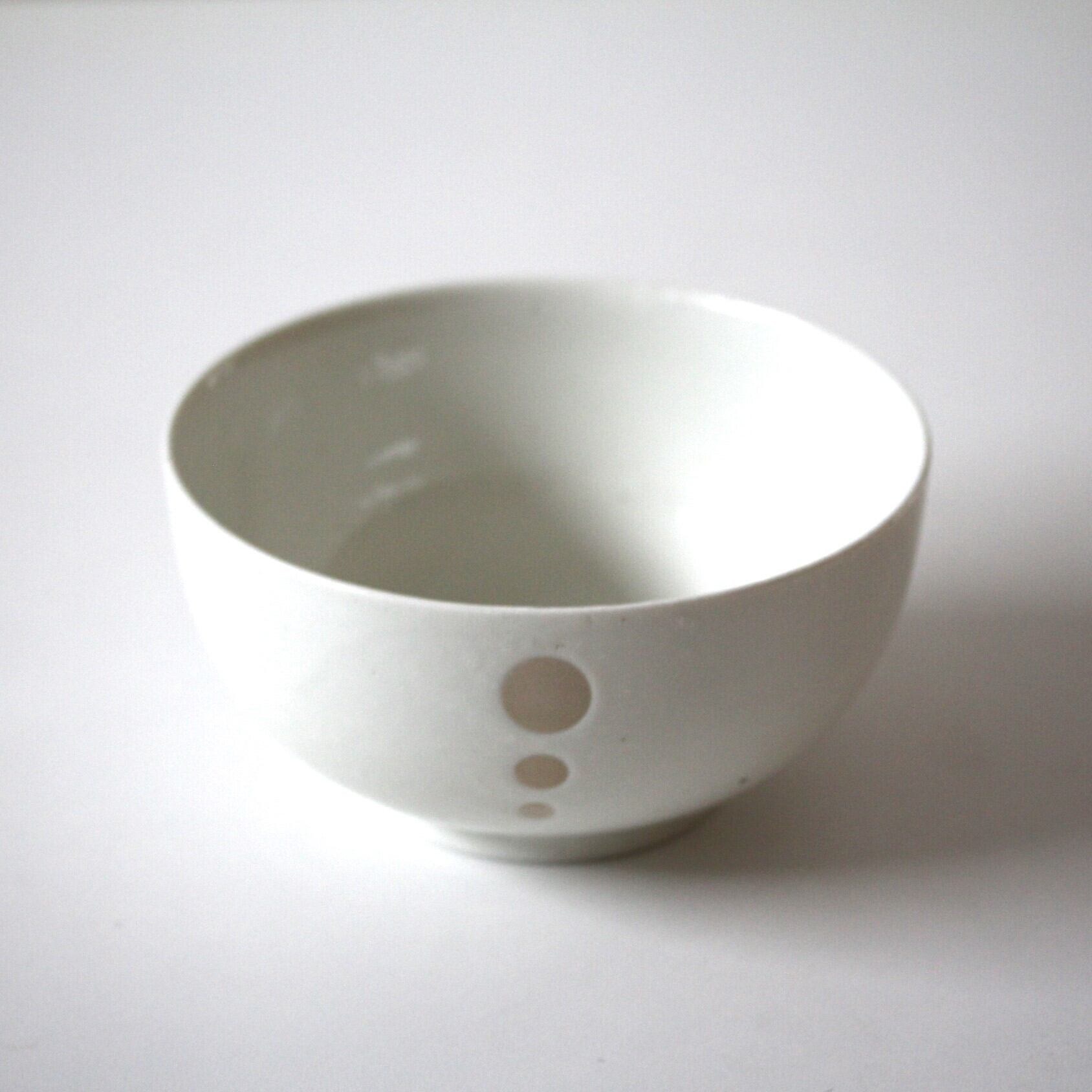 小さな欠けのある白磁泡文鉢 d16.2cm Minor Chipped White Porcelain Bowl, Bubbles Pattern 20th-21st C | Broken and Repaired / キズトツクロイ