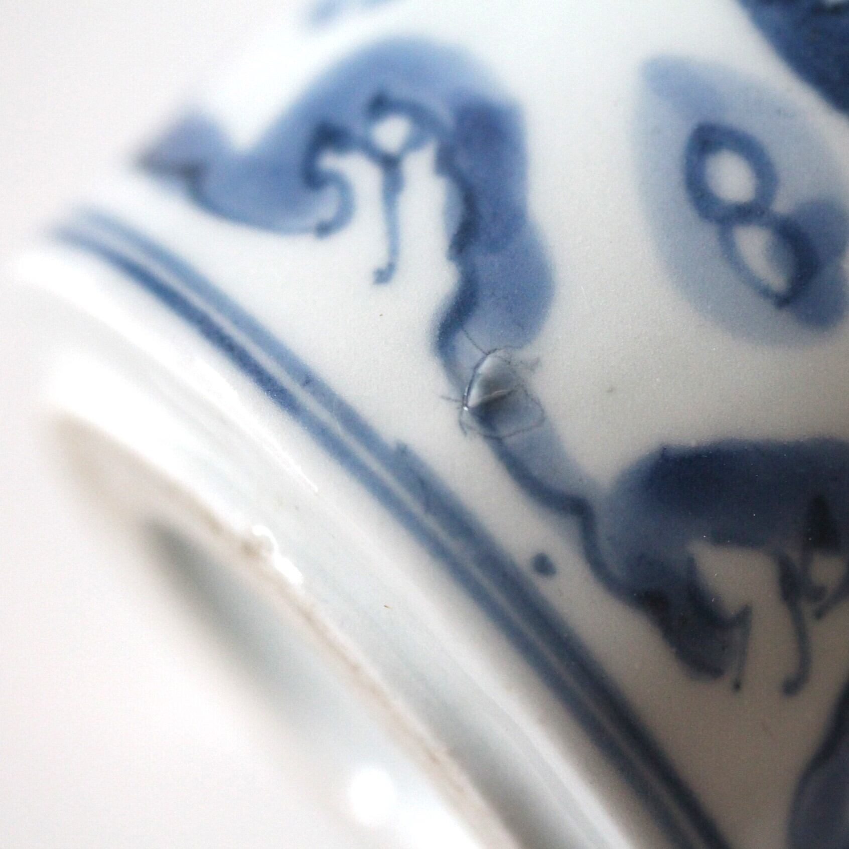 Condition : Minor chips on the rim. Kiln defects on the cup.