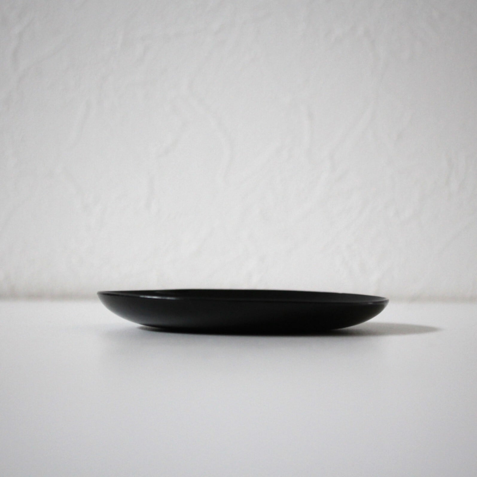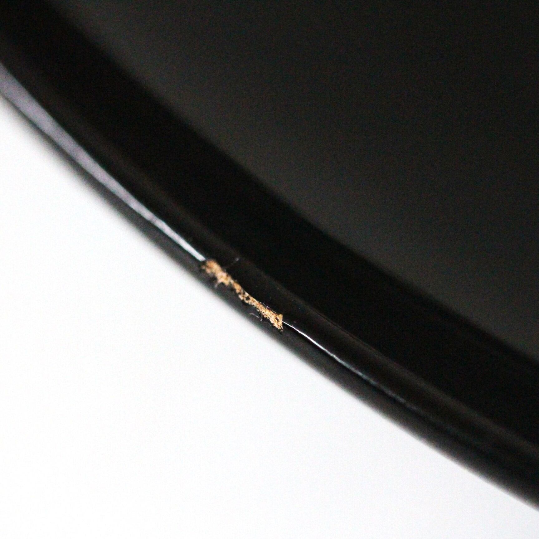 小さな欠けのある 漆絵さくらんぼ文皿 d15.1cm Minor Chipped Black Lacquered Dish, Cherries Design in Colored Lacquer 19th-20th C | Broken and Repaired / キズトツクロイ